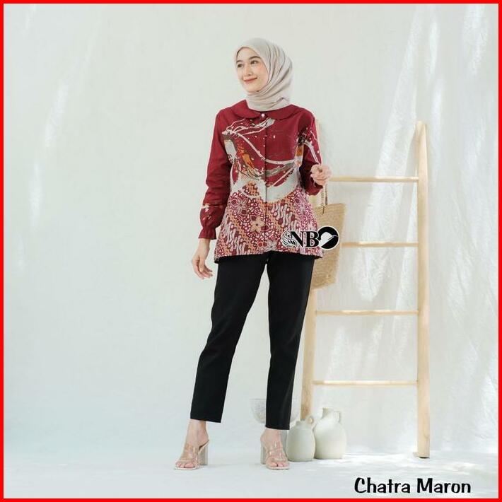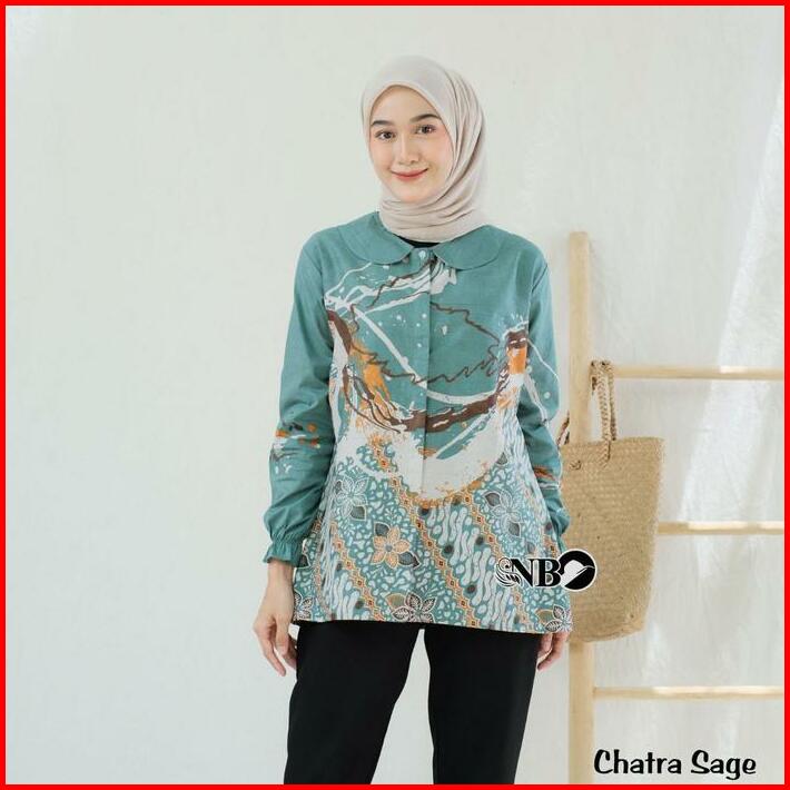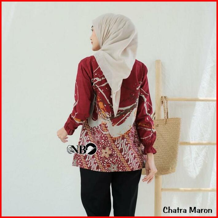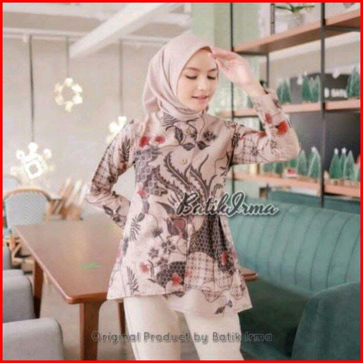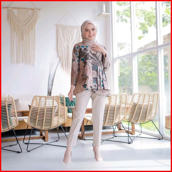 Blouse Batik Wanita Kerja Kantor Modern Kekinian Katun Baju Panjang Atasan Cewek Casual