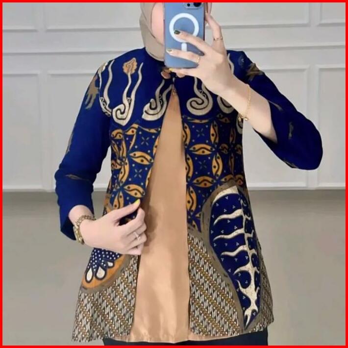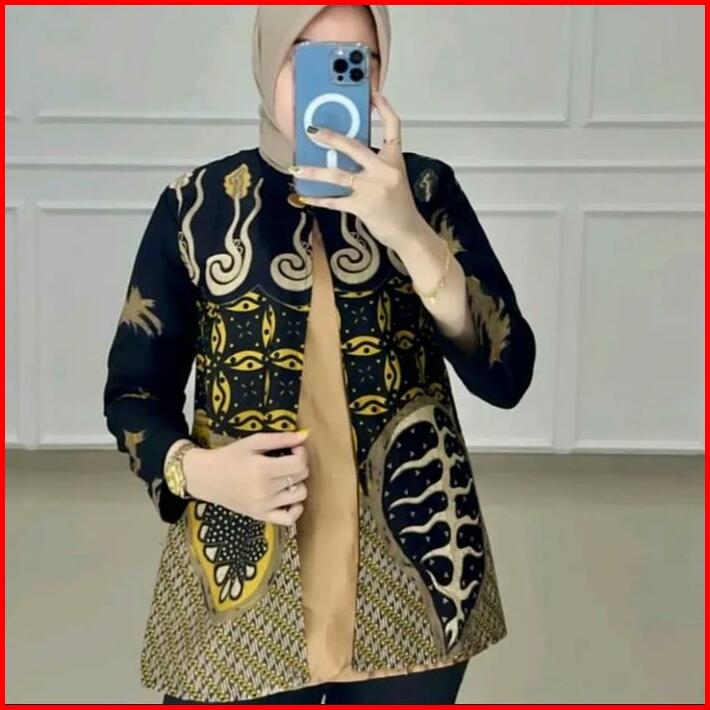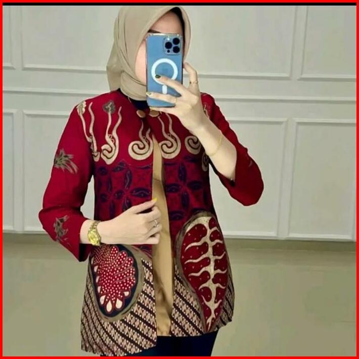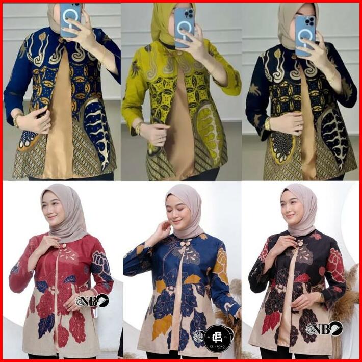 Atasan Blouse Batik Wanita Kekinian Viral Seragam Kerja Modern Lengan Panjang Katun Nyaman