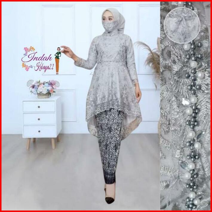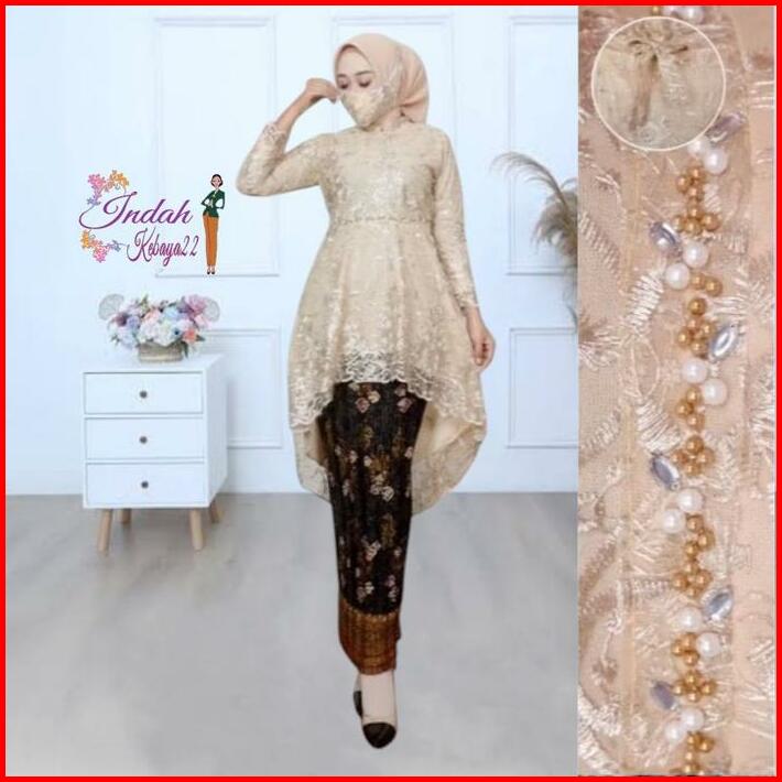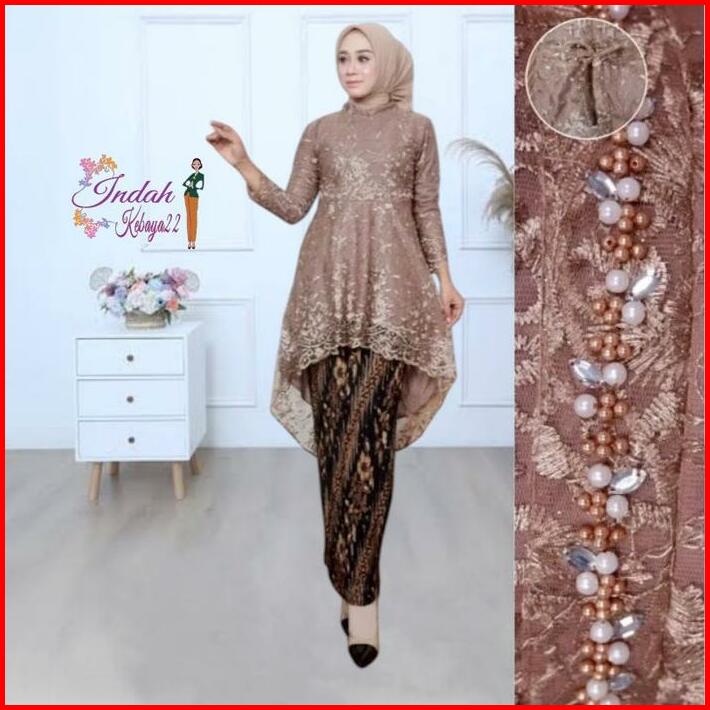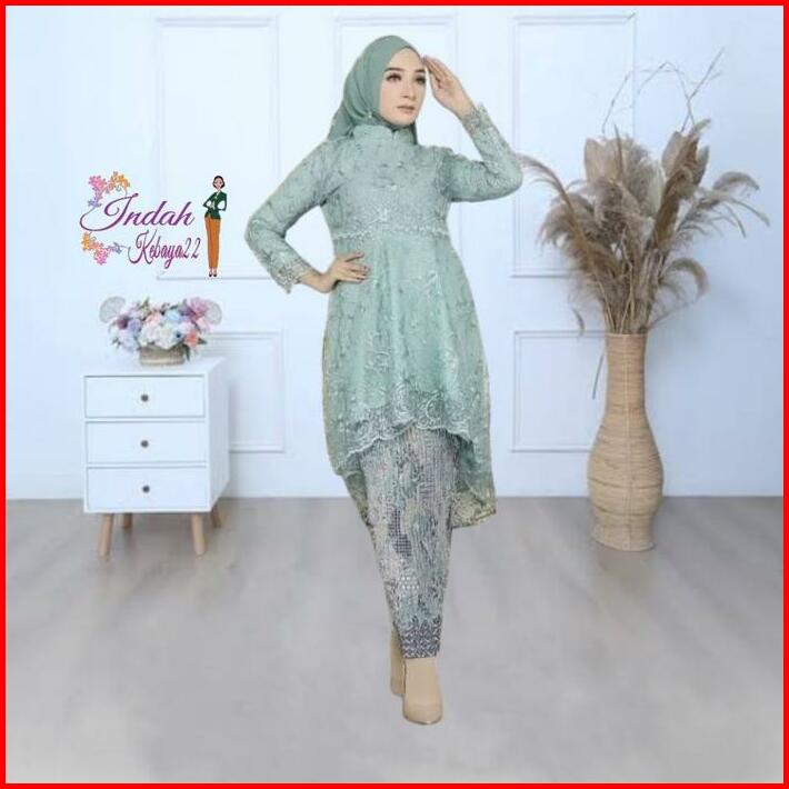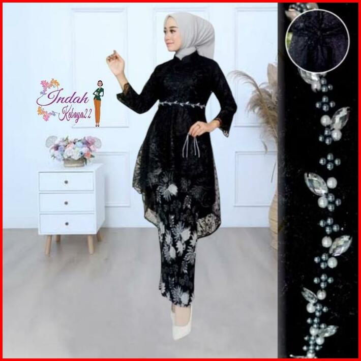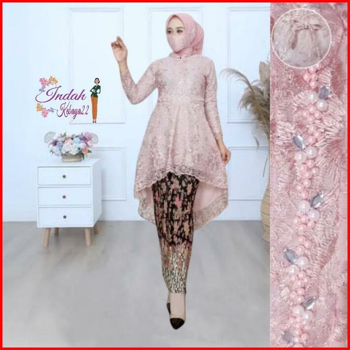 Setelan Kebaya Tunik Payet Aurora Lesti Brokat Tile Kebaya Modern Elegan Wanita Atasan Baju Dress Pesta Kebaya Kondangan