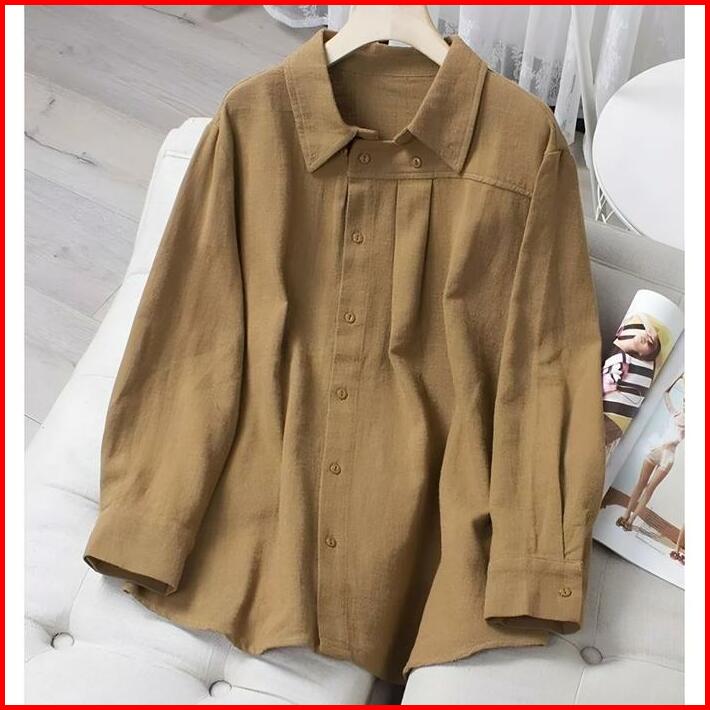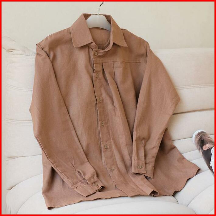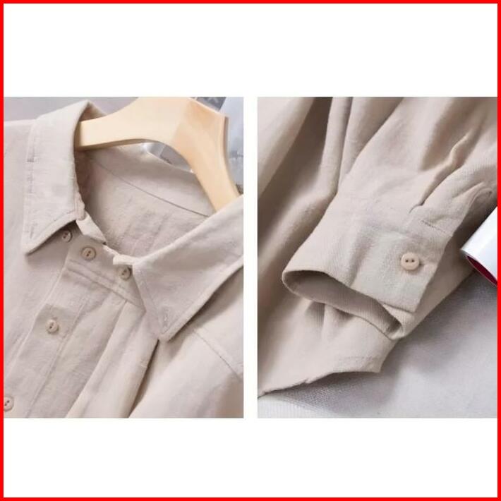 Atasan Wanita Linen Blouse Vonzy Kemeja Linen Panjang Katun Santai Baju Casual Cewek Dewasa Oversize
