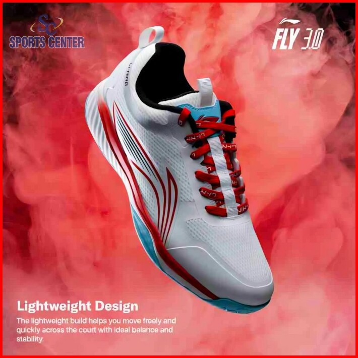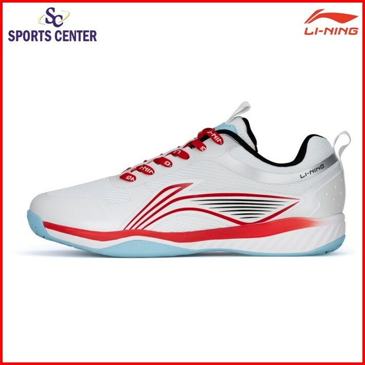 New Sepatu Badminton Lining Ultra Fly Iii 3.0 Aytt053 White Red Ltblue