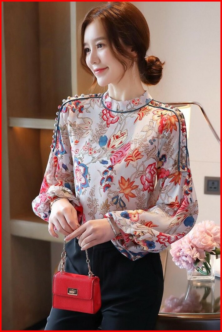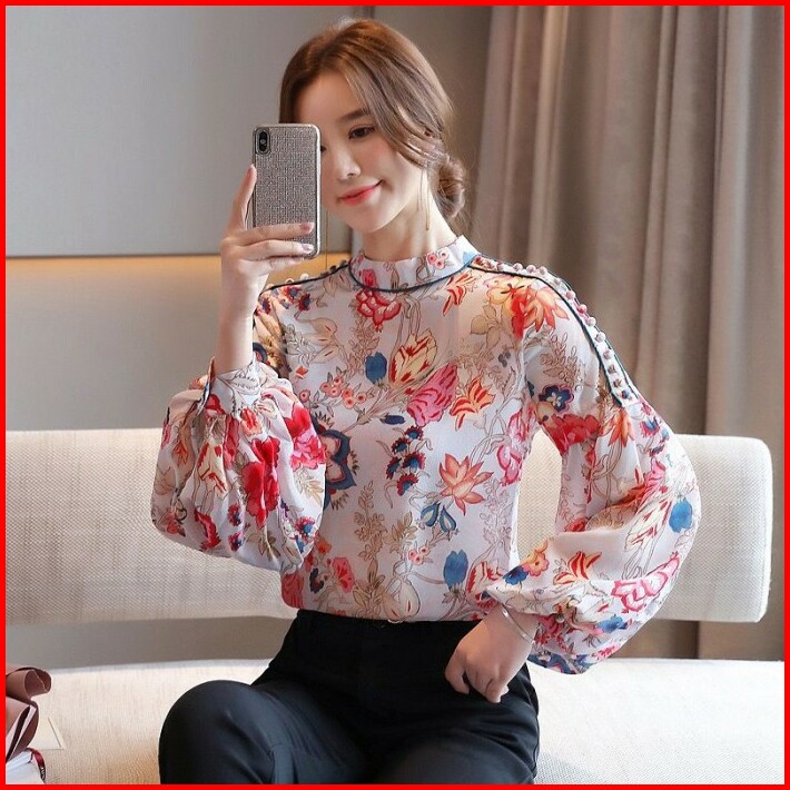 Blouse Wanita Katun Korean Style Iconz Import Motif Bunga 9309 03054