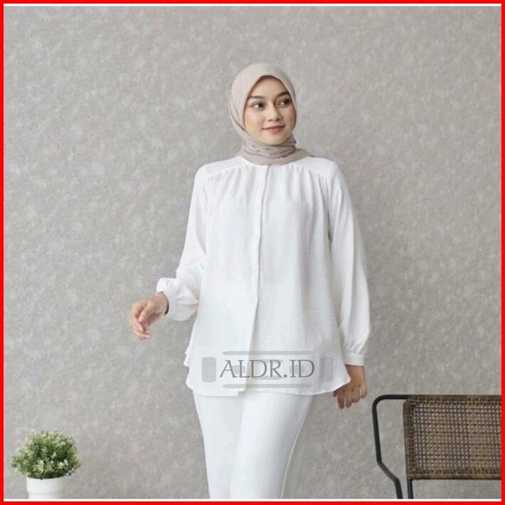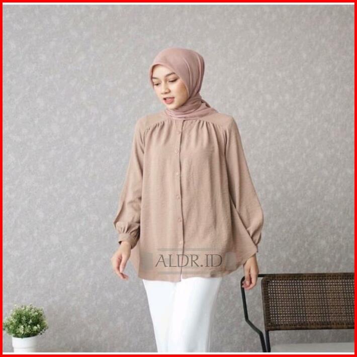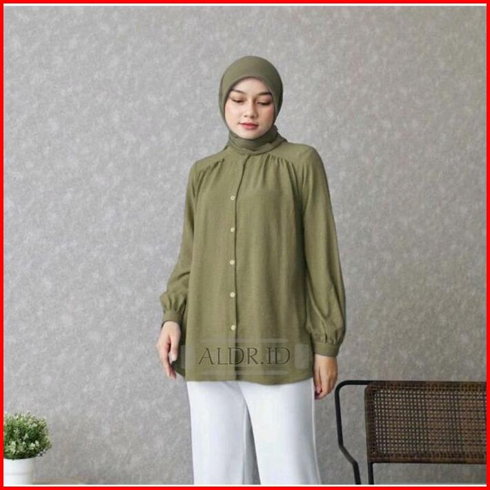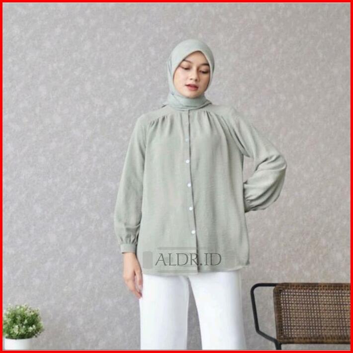 Alina Blouse Crinkle Ld 120 Atasan Wanita Lengan Panjang Airflow Baju Kancing Oversize Kemeja Viral