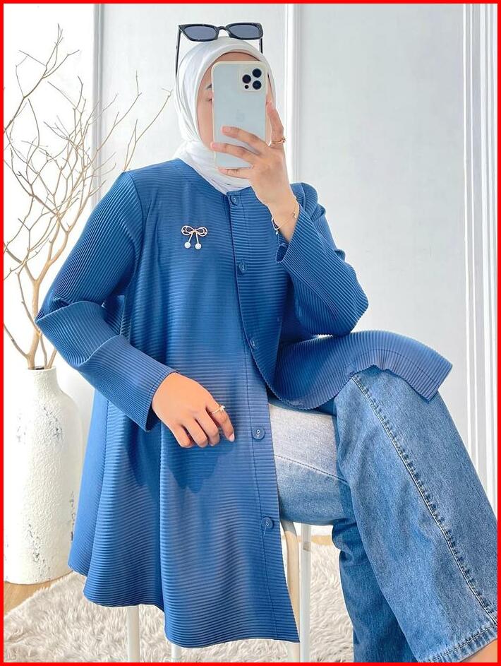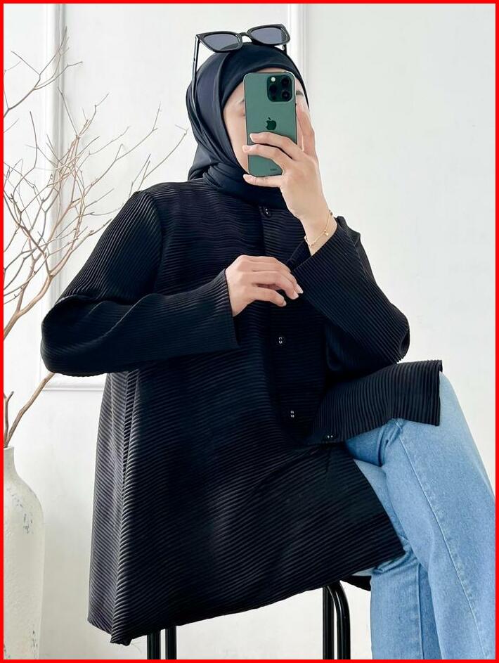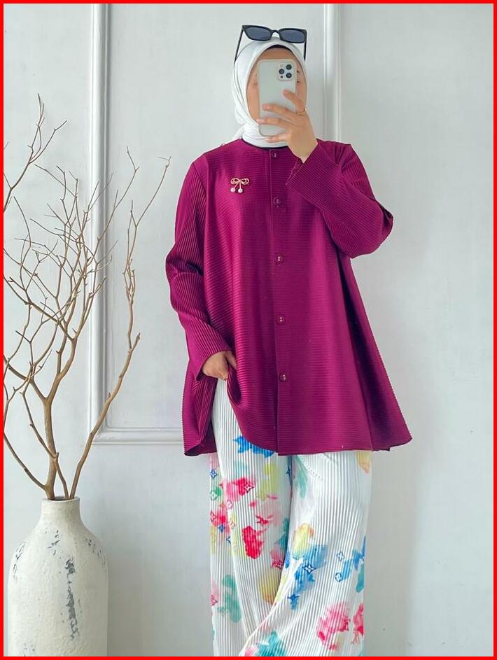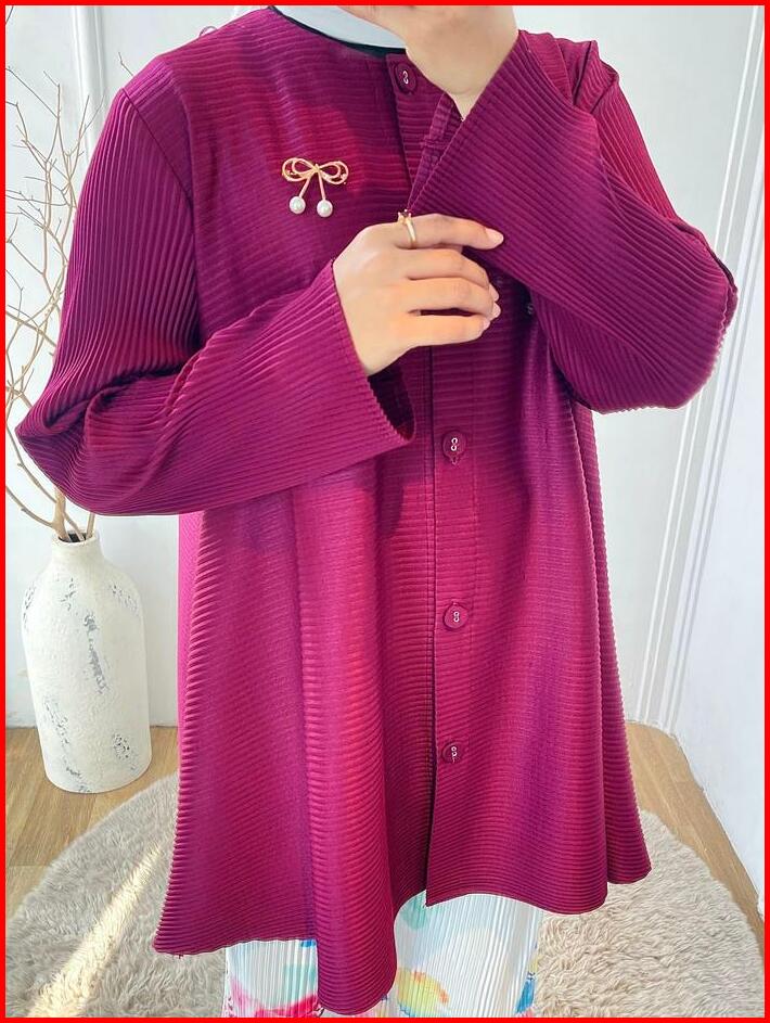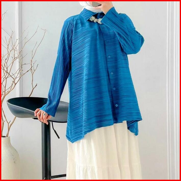 Kemeja Baju Oversize Kekinian Lengan Panjang Bahan Plisket Guita