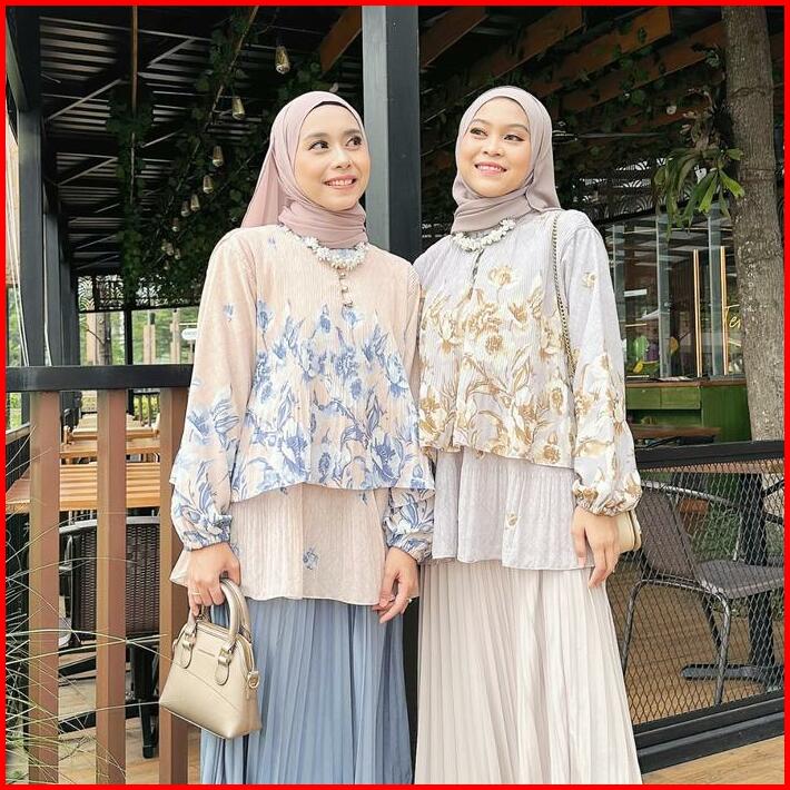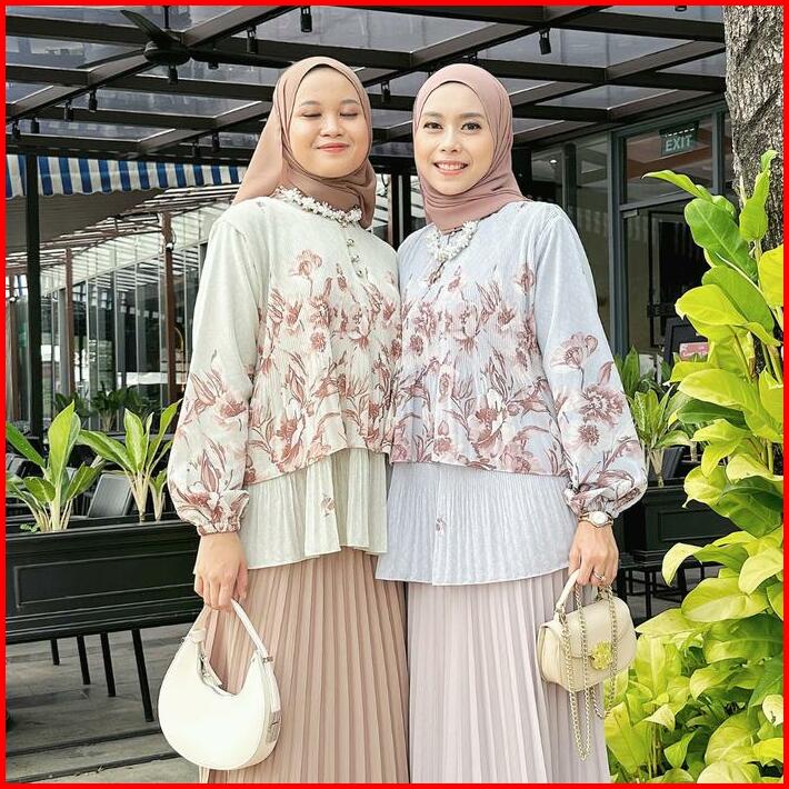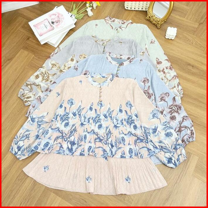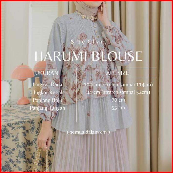 Harumi Blouse Blouse Plisket Ceruty Babydoll Blouse Korean Style Blouse Adem Atasan Wanita Premium Baju Busui Motif Kanc