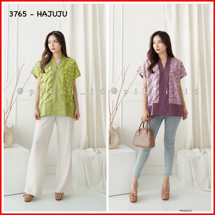 Baju Batik Wanita Jumbo Modern Blouse Batik Katun V Neck Oversized