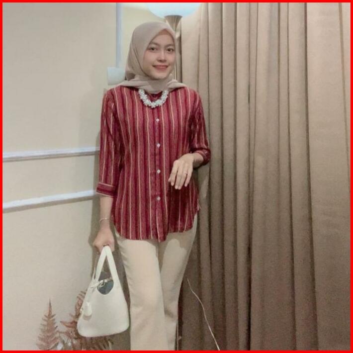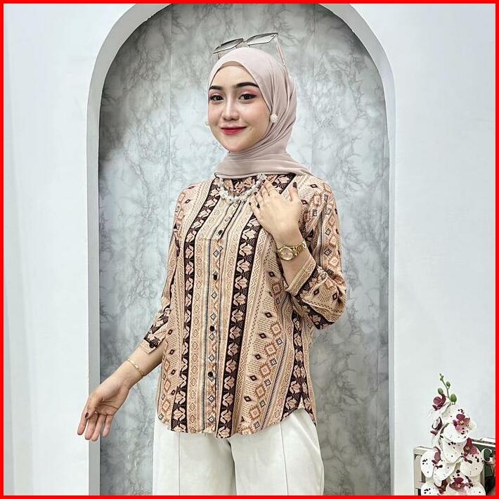 Kemeja Oversize Motif Blouse Kain Rayon Wanita Kemeja Wanita Terbaru Atasan Wanita Korean Korean -rayon Motif Terbaru Bl