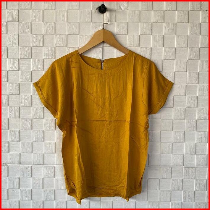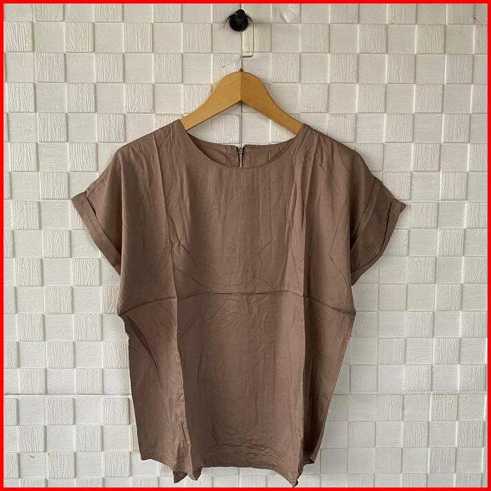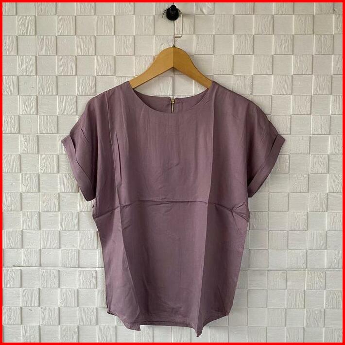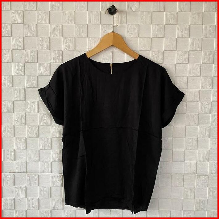 Atasan Polos Tangan Stik Balik Katun Rayon Blouse Wanita Zipper Belakang Lengan Pendek Terbaru 2617