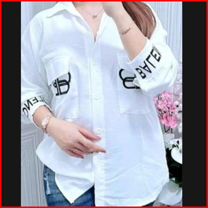Kemeja Wanita Kekinian Balenci Crinkle Airflow Premium Panjang Atasan Nyaman Cantik Baju Oversize Kancing