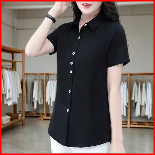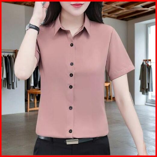 Calissa Fashion Kemeja Atasan Wanita Kantor Office Style Korea Lengan Pendek Model Suzy
