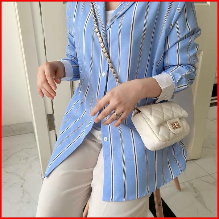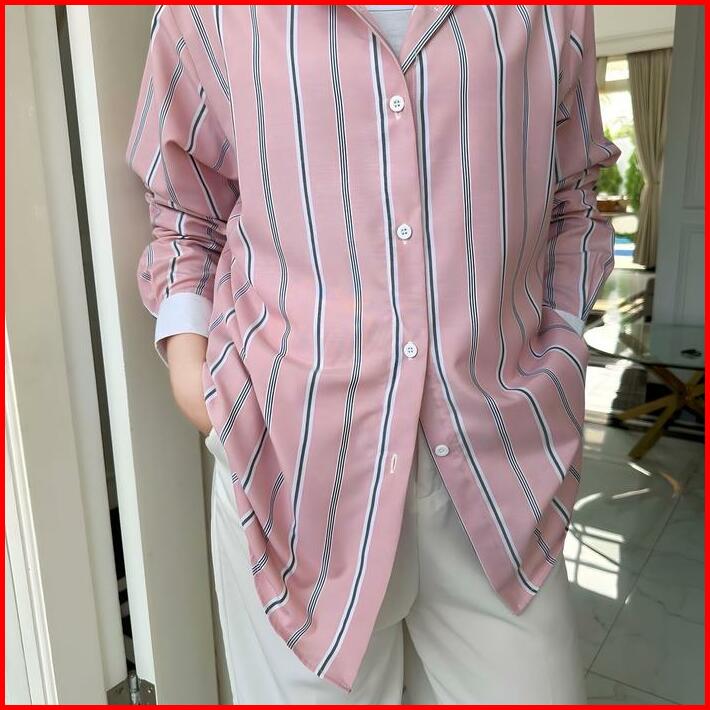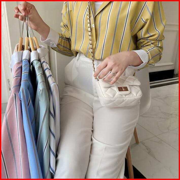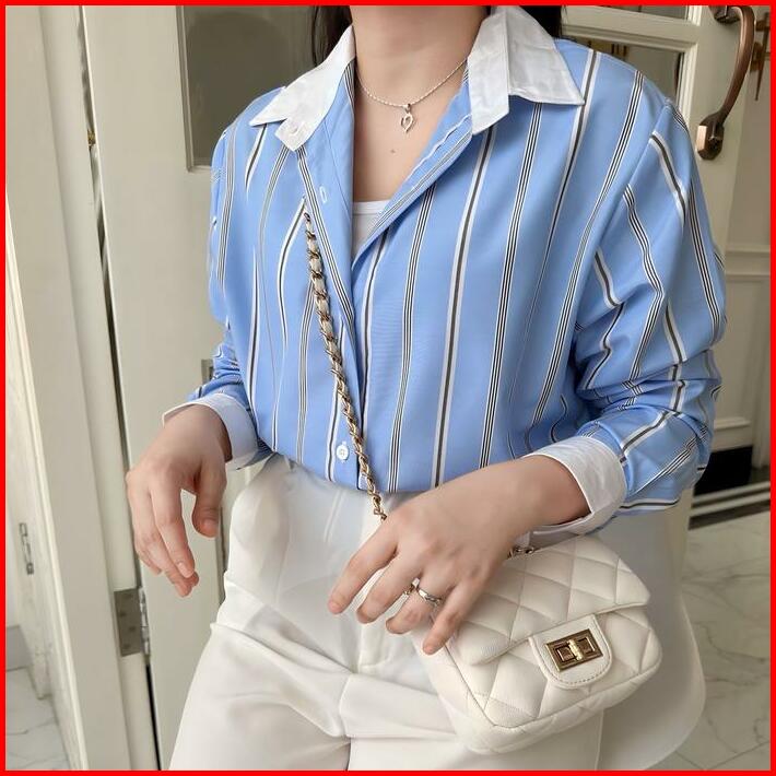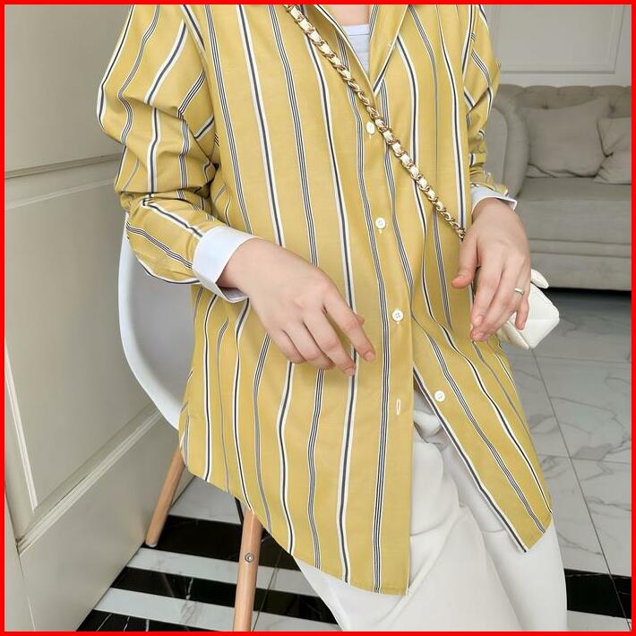 Kemeja Setrip Wanita Atasan Panjang Baju Katun