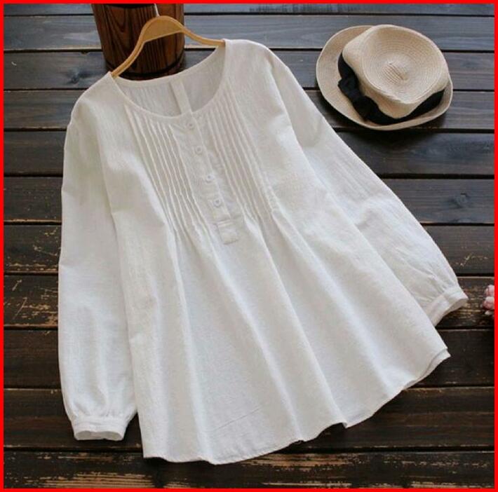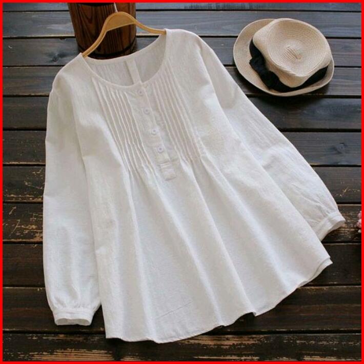 Nazifa Blouse Atasan Wanita Muslim 3 Size L Xl Xxl Katun Linen Crinkle Polos Nyaman Pink Casual Baju Simple Panjang Rema