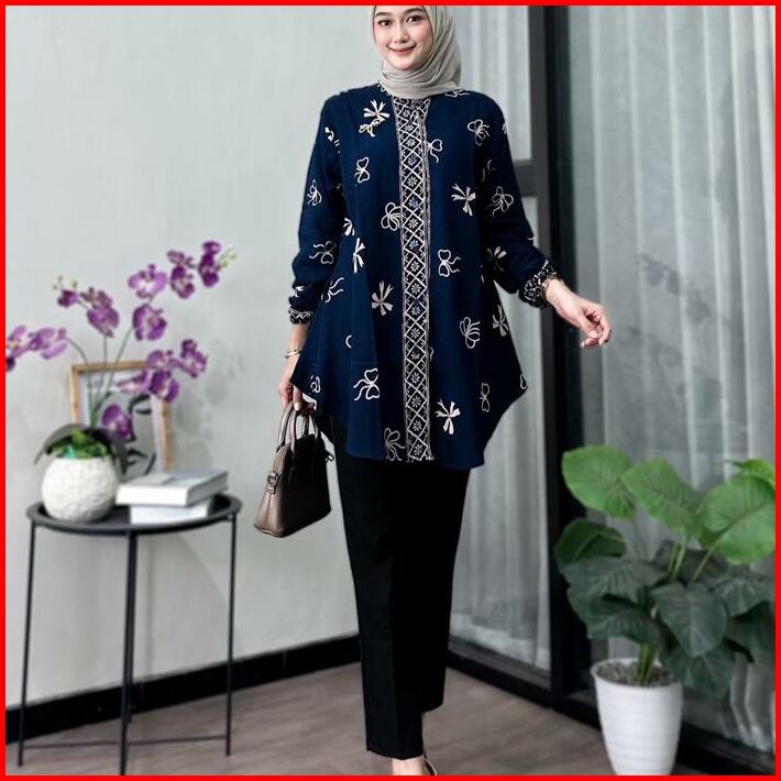 Yumna Blouse Bahan Rayon Full Kancing Model Oversize. Baju Atasan Wanita