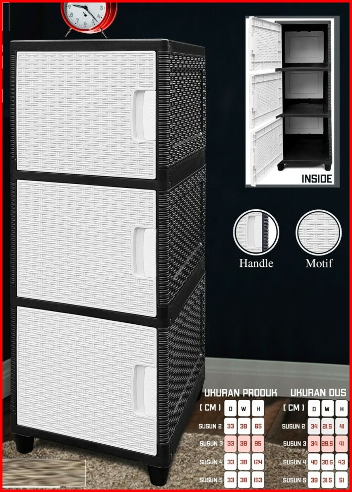 Lemari Plastik Murah Merk Lily Motif Rotan 5 Susun Putih