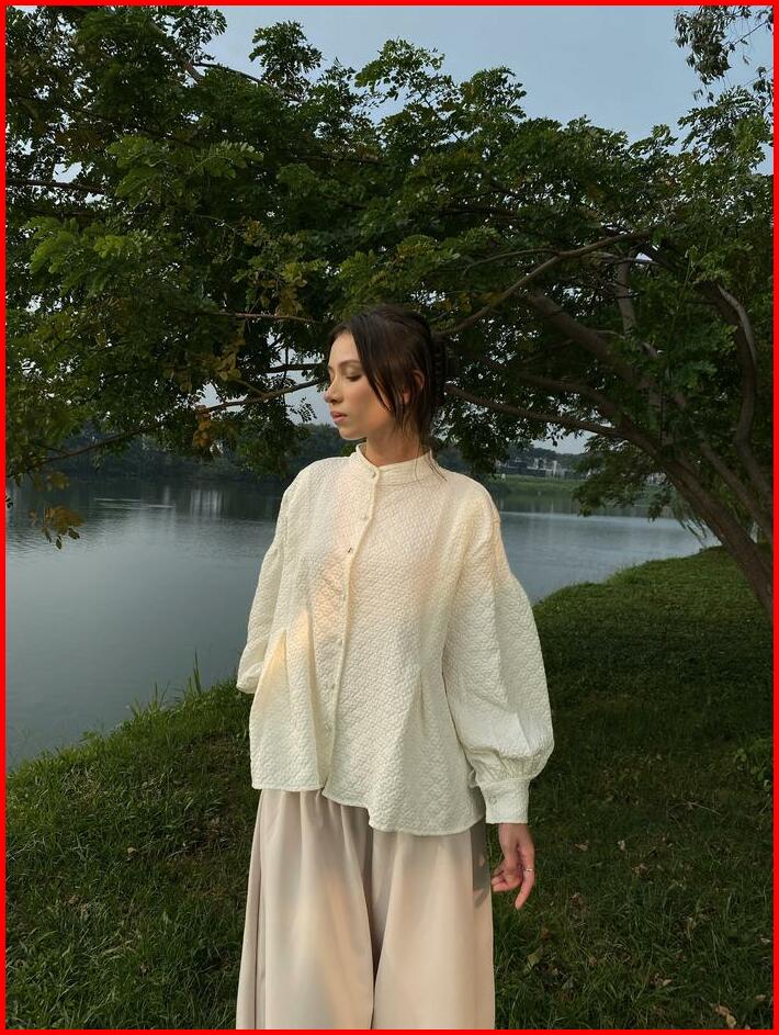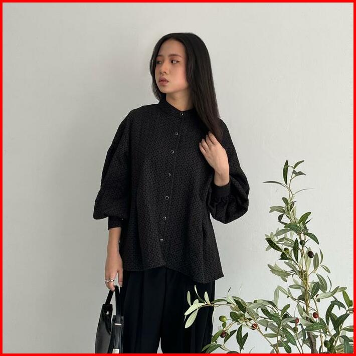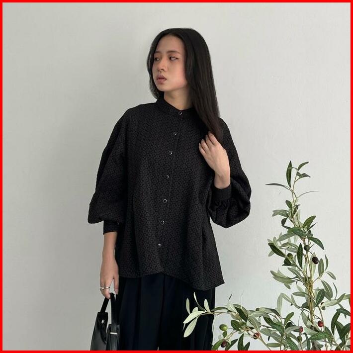 Alaia Top Kirim Bulan April Atasan Wanita Casual Puffy Sleeves Blouse Lengan Balon Textured Fabric Gracias Label