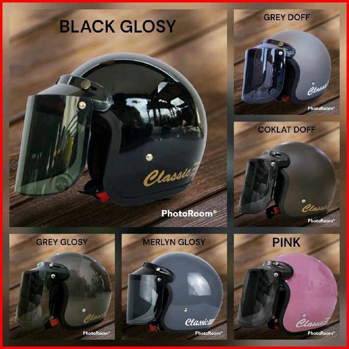 Helm Bogo Classic Pria Wanita Cembung Kaca Cembung Kaca Motorcycle