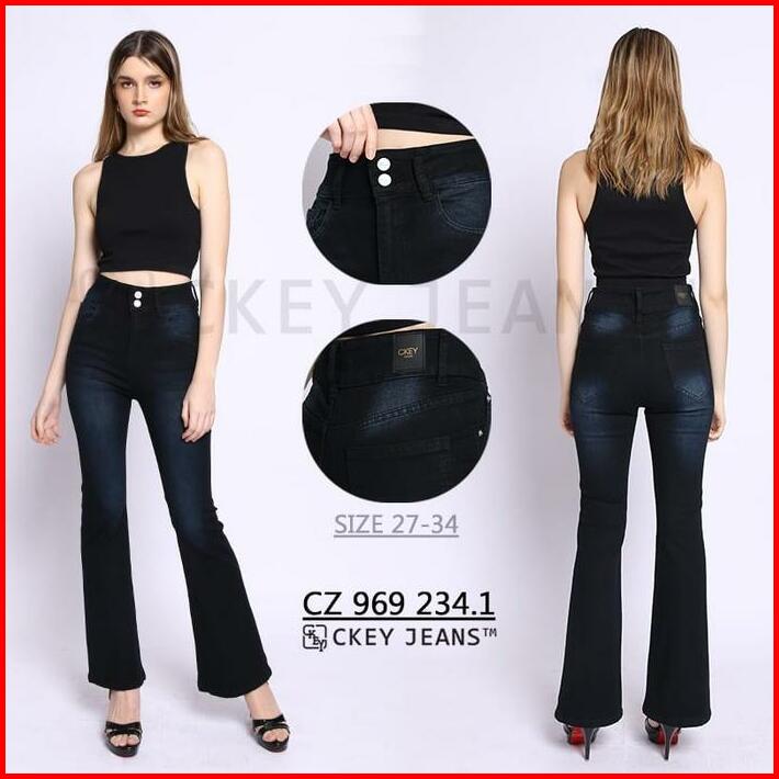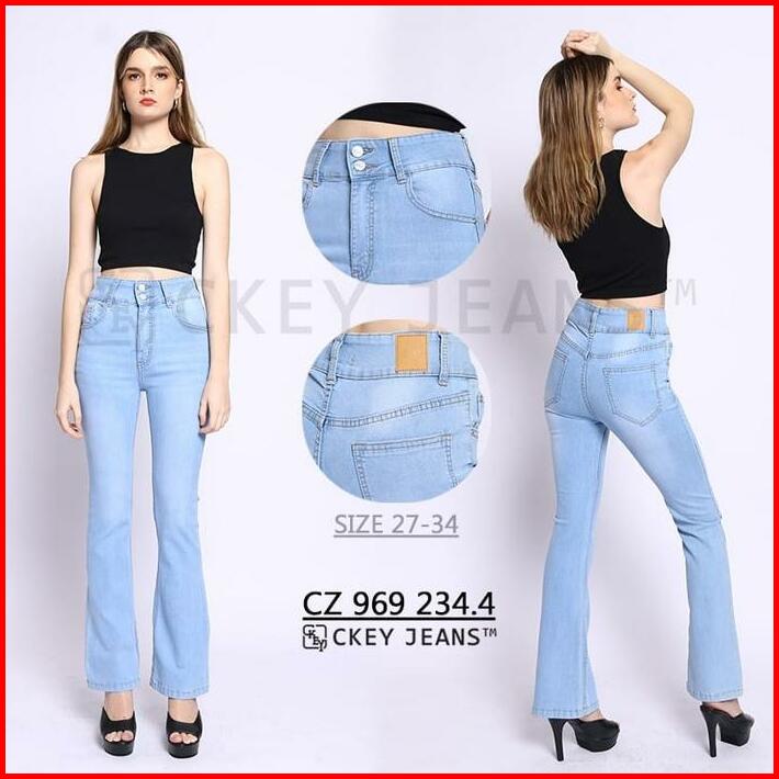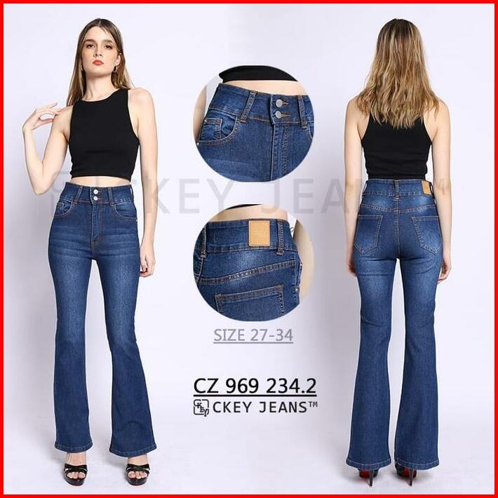 Celana Jeans Cutbray Fiora Wisker Haigwaist Wanita Kancing Dua