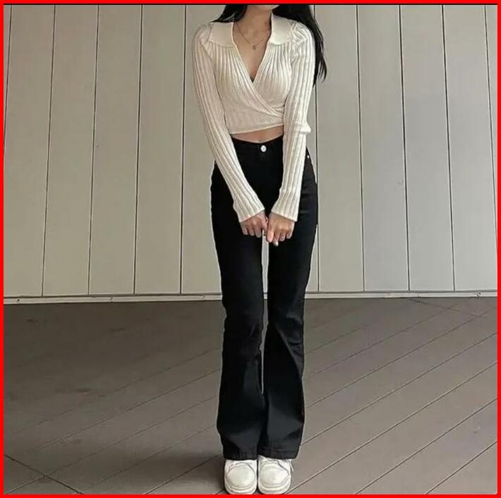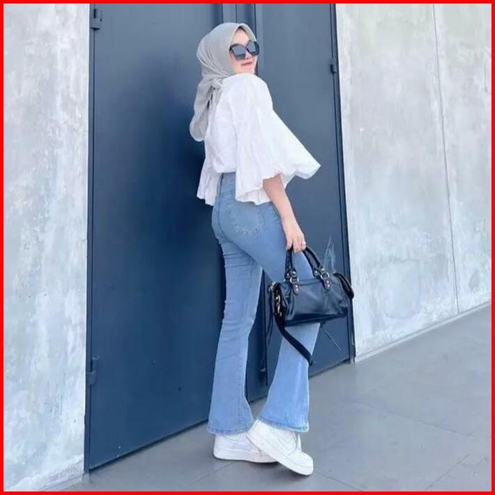 Hass Cutbray Jeans Low Waist Stretch Wanita Slim-fitting Celana Cewek High Waist Terbaru Grey Abu Polos Panjang