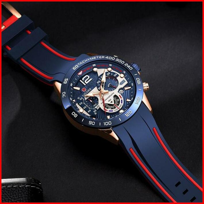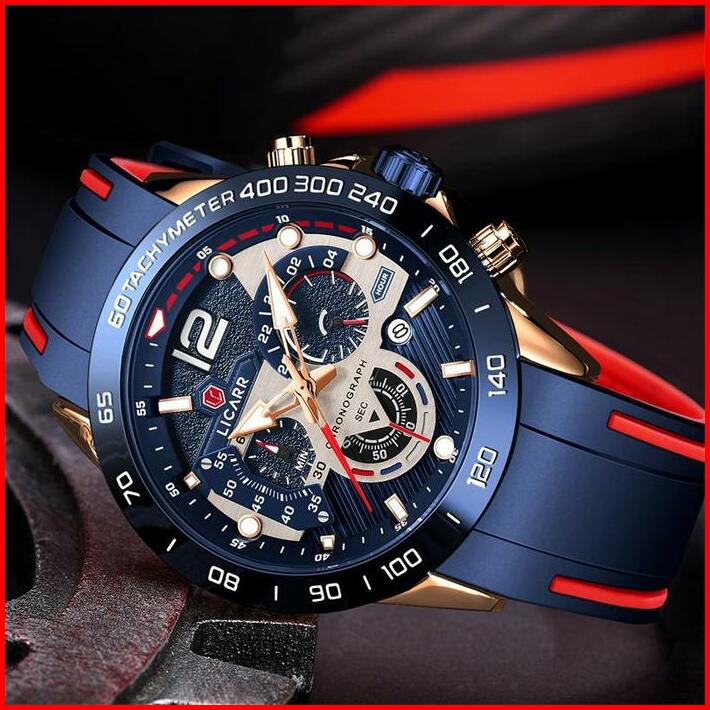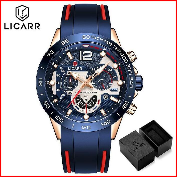Licarr Jam Tangan Analog Pria Original Fashion Sporty Casual Dengan Tali Silikon Quartz Movement Kronograf Anti Air Man