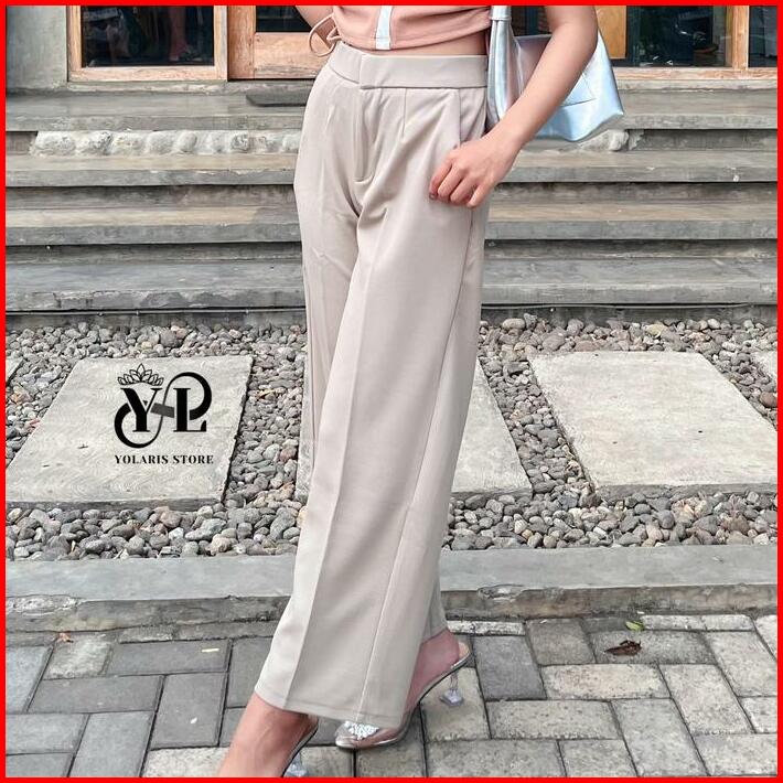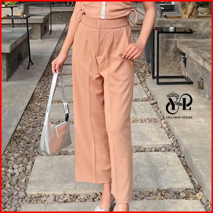 Yolaris Store. Cozie Knit Pants Celana Highwaist Panjang Wanita Kulot Rib Premium
