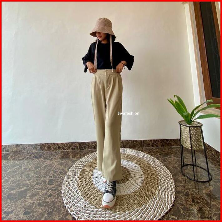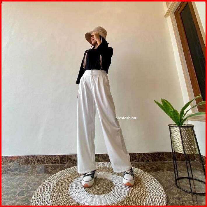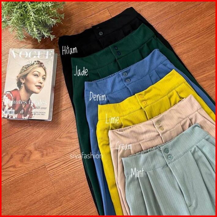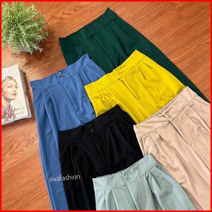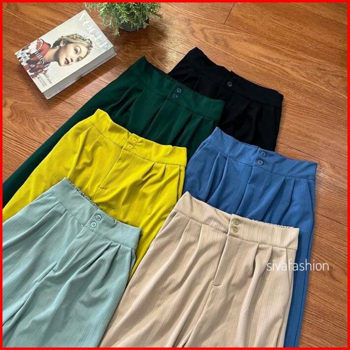 Sivafashion-jennie Knit Pants Celana Kulot Highwaist Knit Kancing Wanita