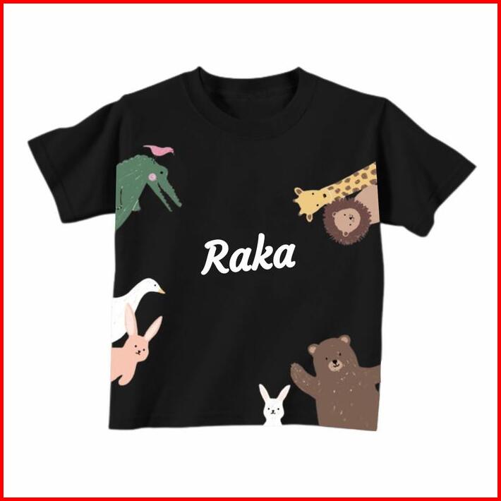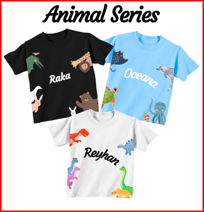 Baju Kaos Binatang Lucu Free Custom Nama Bayi Dan Anak Katun Combed 30s Merah Biru Muda