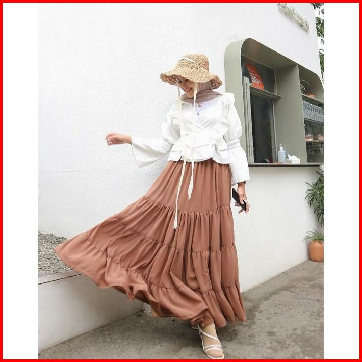 Selia Rok Rempel Ceruty Babydoll Premium Rok Susun Ruffle Maxi Skirt Panjang Karet Nyaman Wanita Midi Fit Remaja Casual