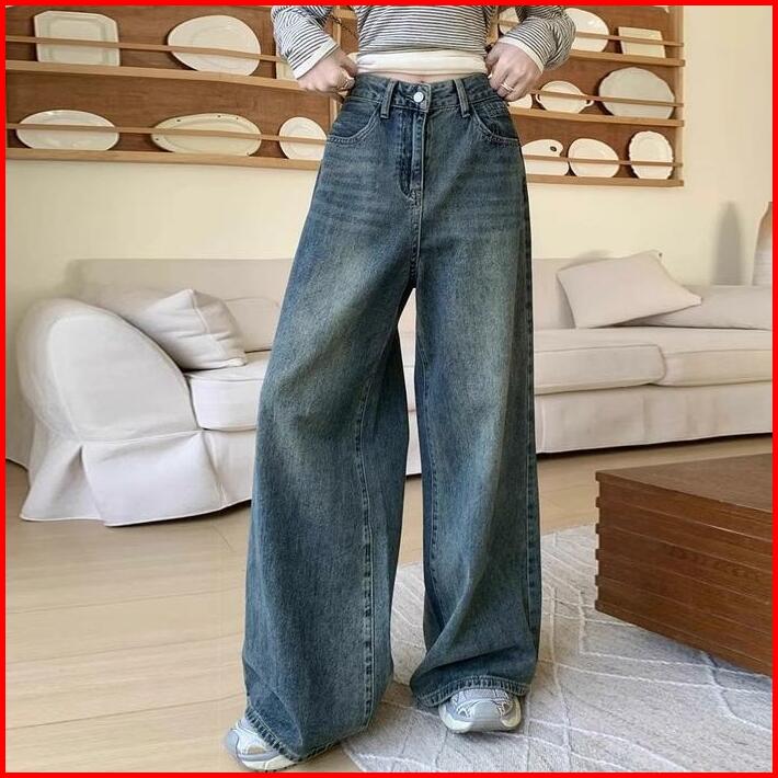 Pinkgirl.idcelana Jeans Bigsize Jumbo Jeans High Waist Wanita Celana Denim Panjang Pinggang Karet Baggy Pants Celana Cut