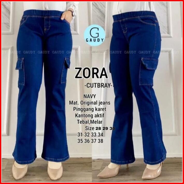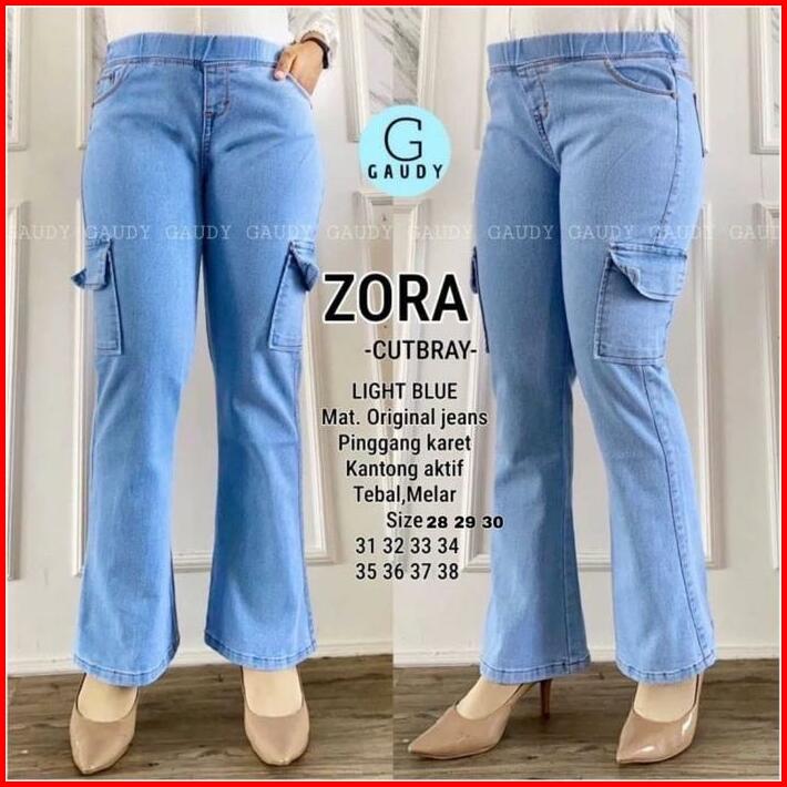 Zora Celana Jeans Cargo Model Cutbray Pinggang Karet Wanita