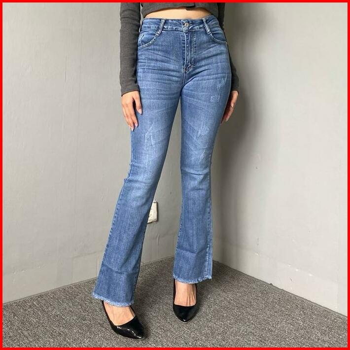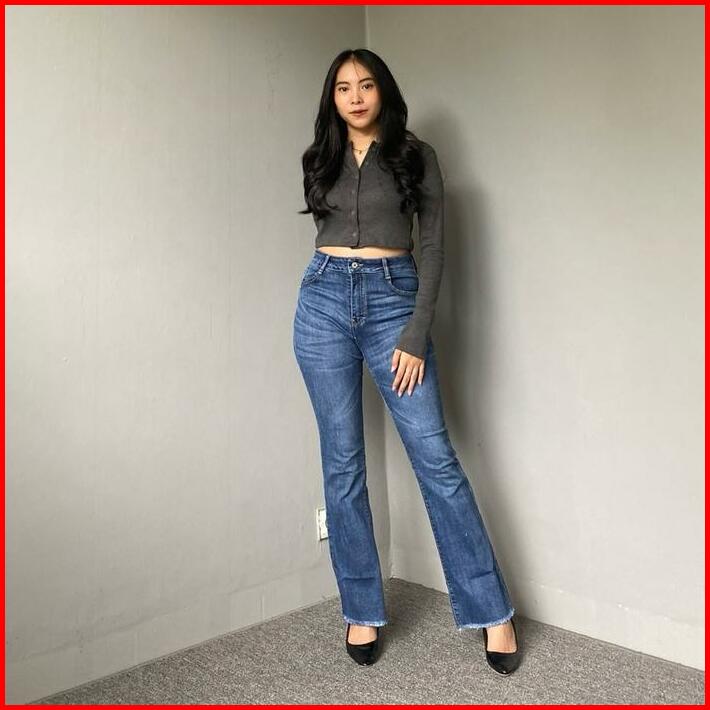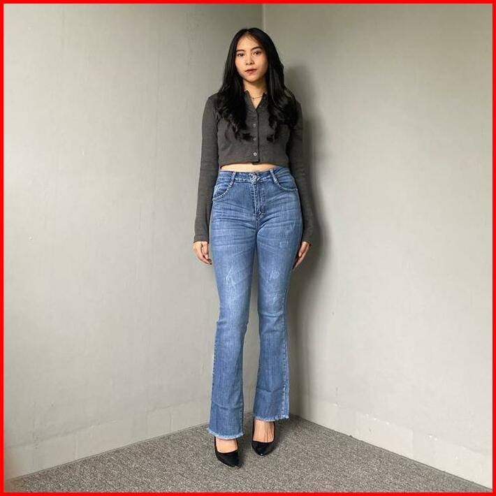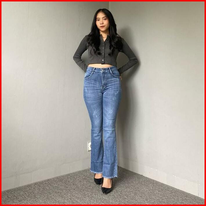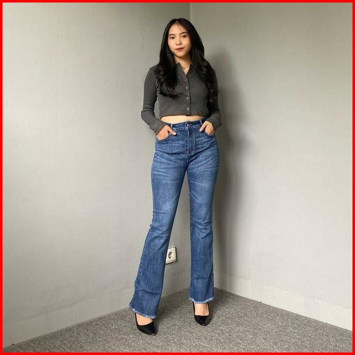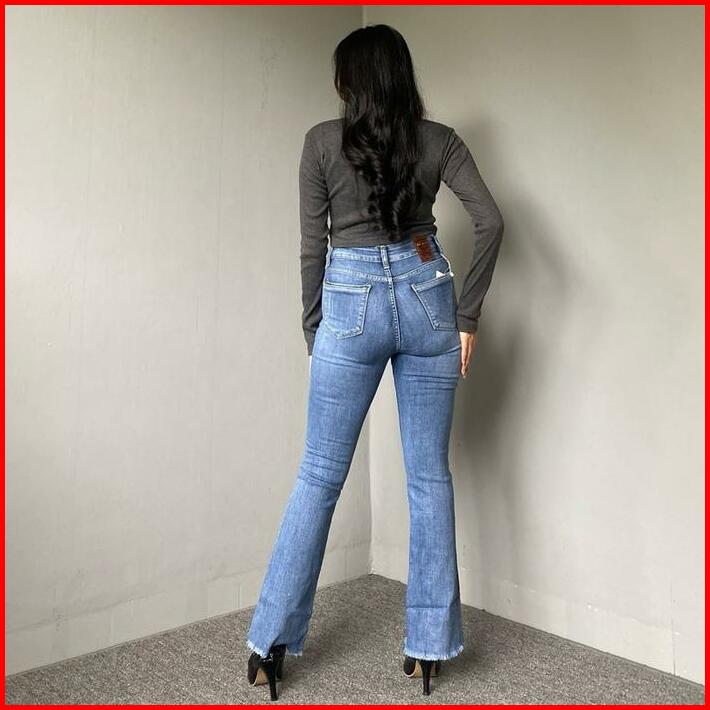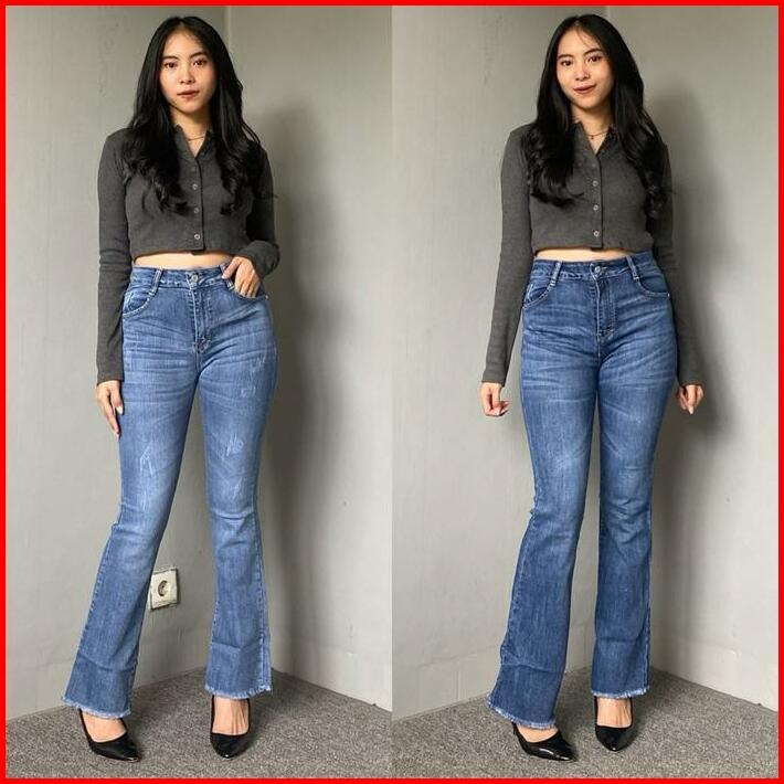 Verada Cutbray Series Celana Jeans Highwaist Bootcut Wanita Premium Rawis Strech Kekinian Biru Nyaman Panjang Stretch Ce