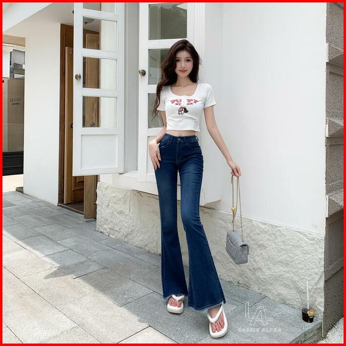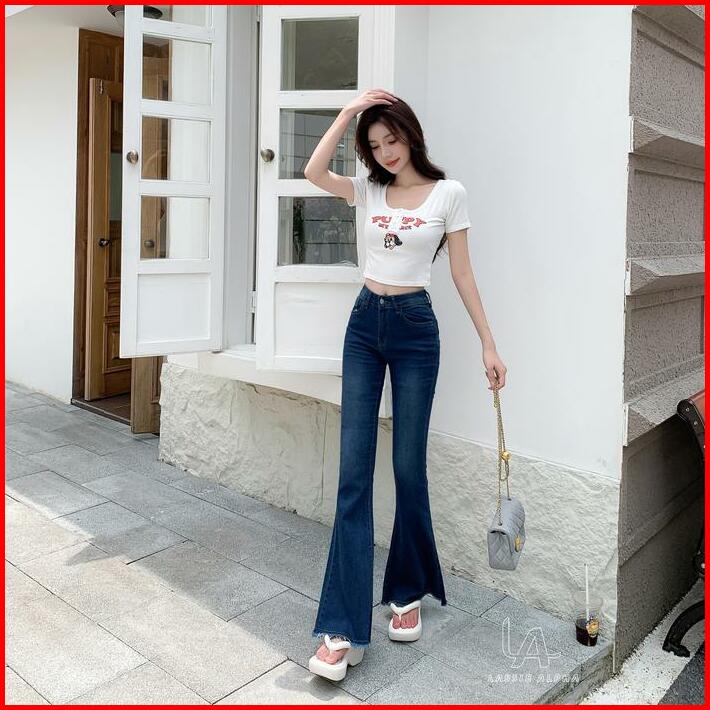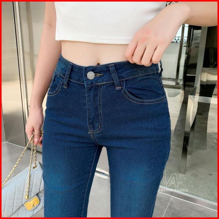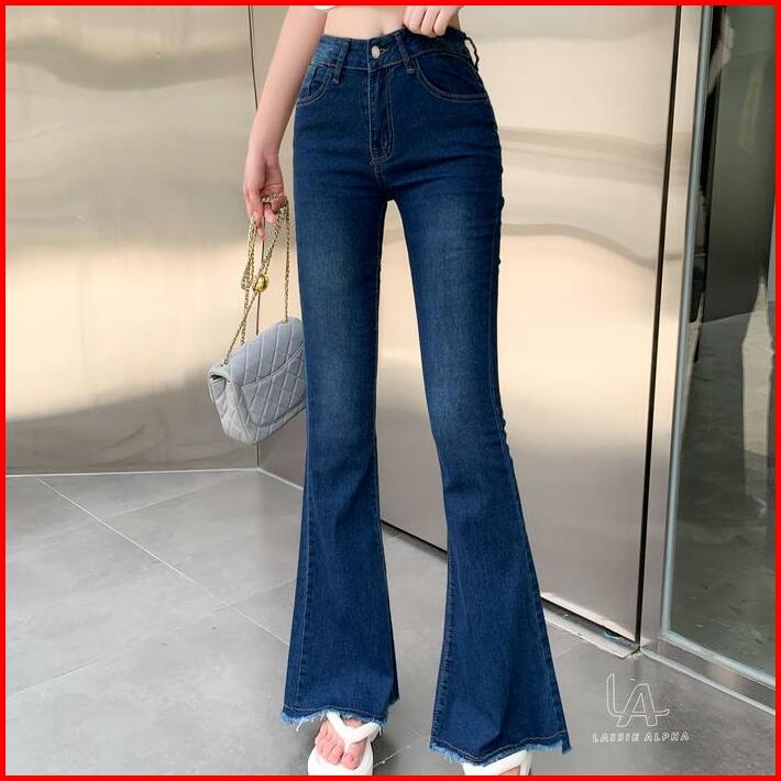 Lassie Alpha J83 Celana Jeans Wanita Celana Wanita Berkobar Hw Pinggang Tinggi Cutbray Celana Skinny Korean Feminine Fas