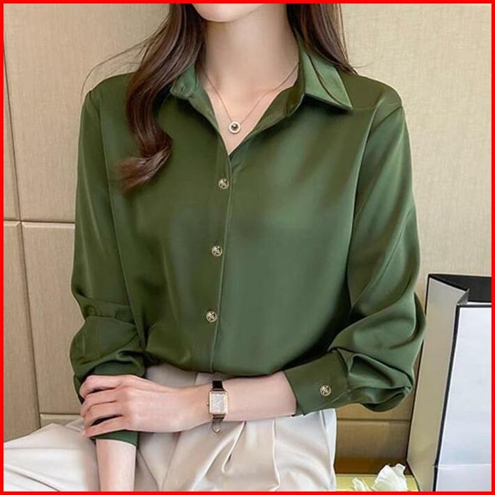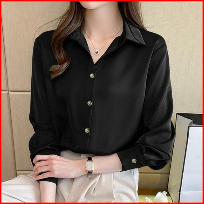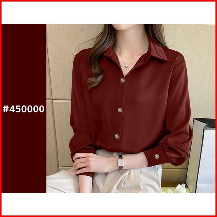 Calissa Fashion Kemeja Atasan Wanita Kantor Office Style Korea Lengan Panjang Model Naomi