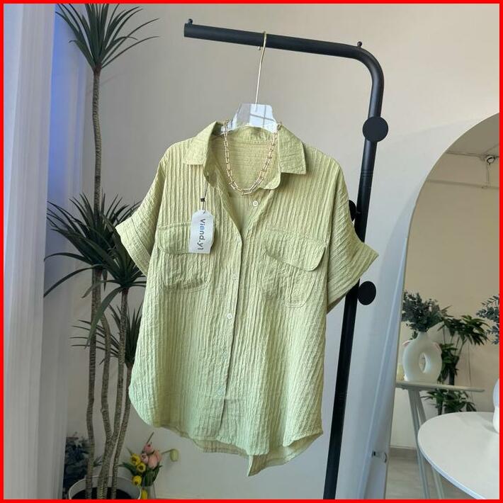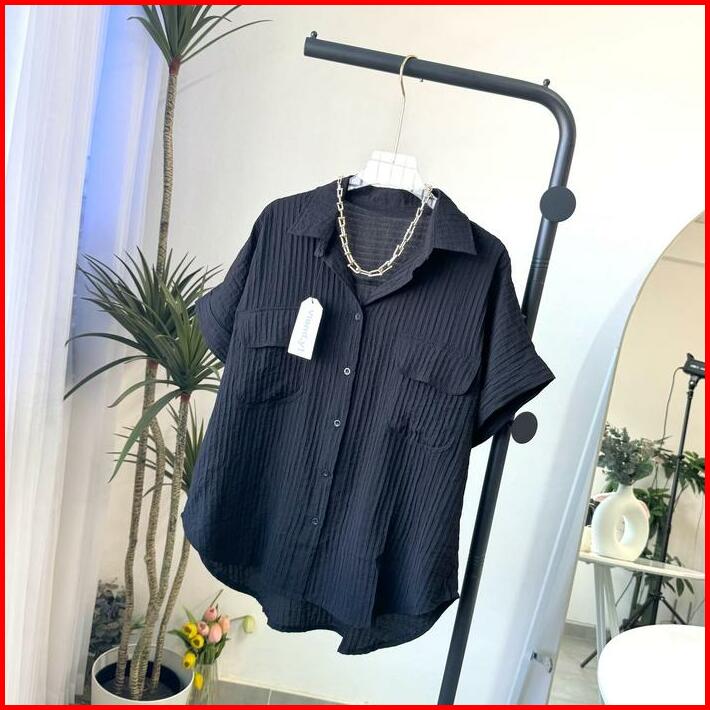 Shirt Top Atasan Wanita Korea Blouse Lengan Pendek Baju Pocket E.105