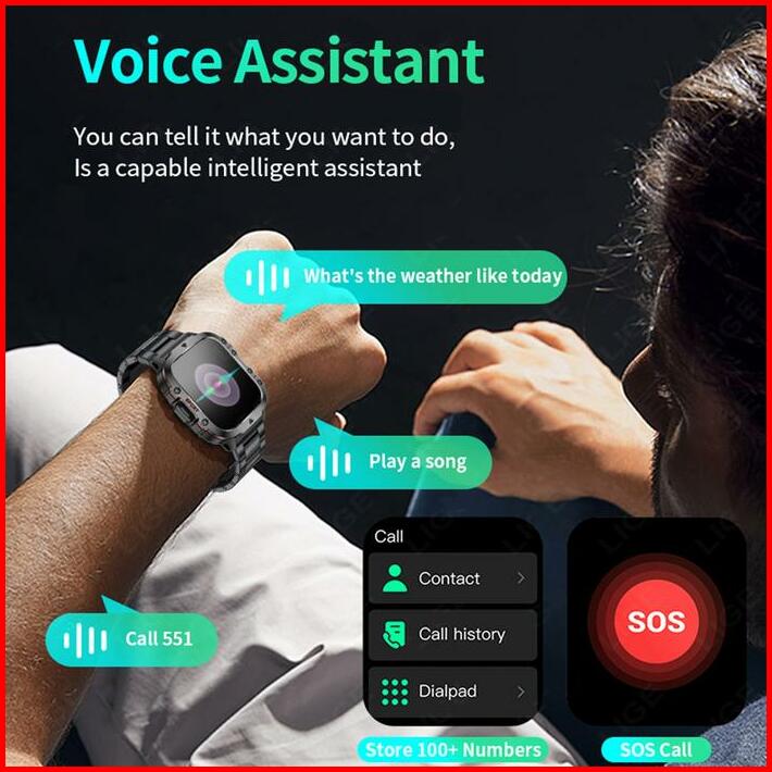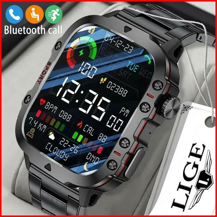 Lige Jam Tangan Pintar Baru 1.96 Screen Layar Hd Panggilan Bluetooth Asisten Suara Olahraga Kebugaran Gelang Pria Tahan
