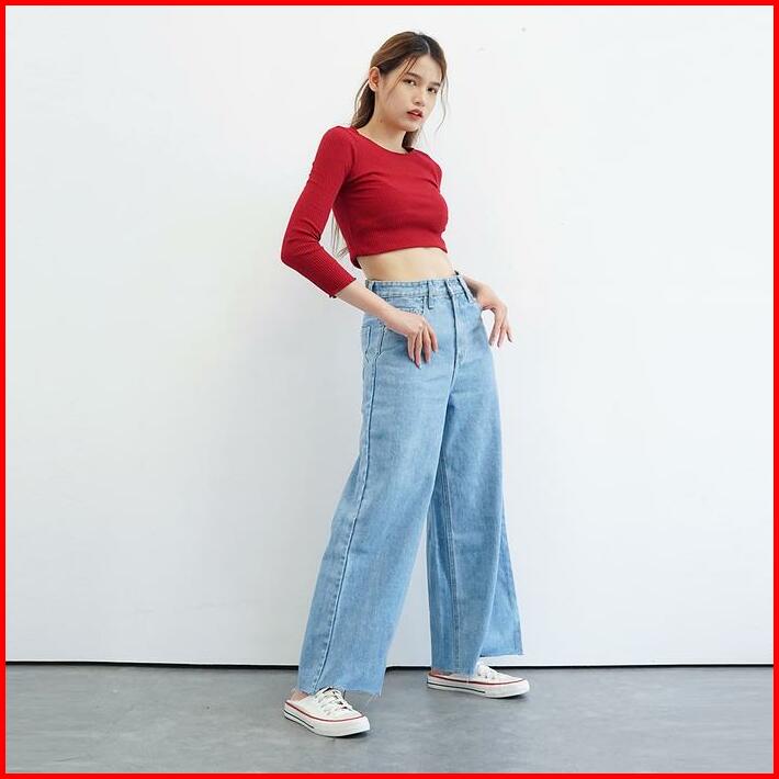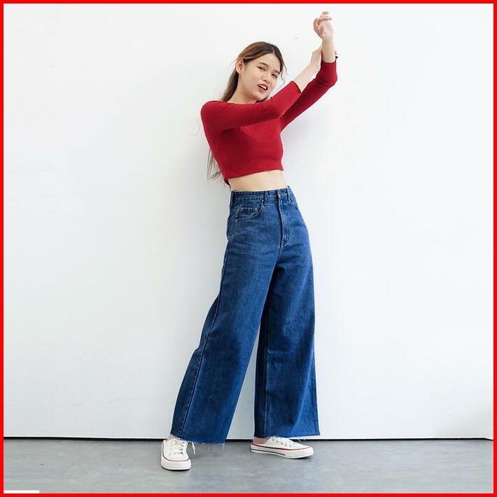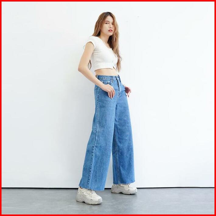 Bck-celana Highwaist Kulot Jeans Wanita Loose Ingrid