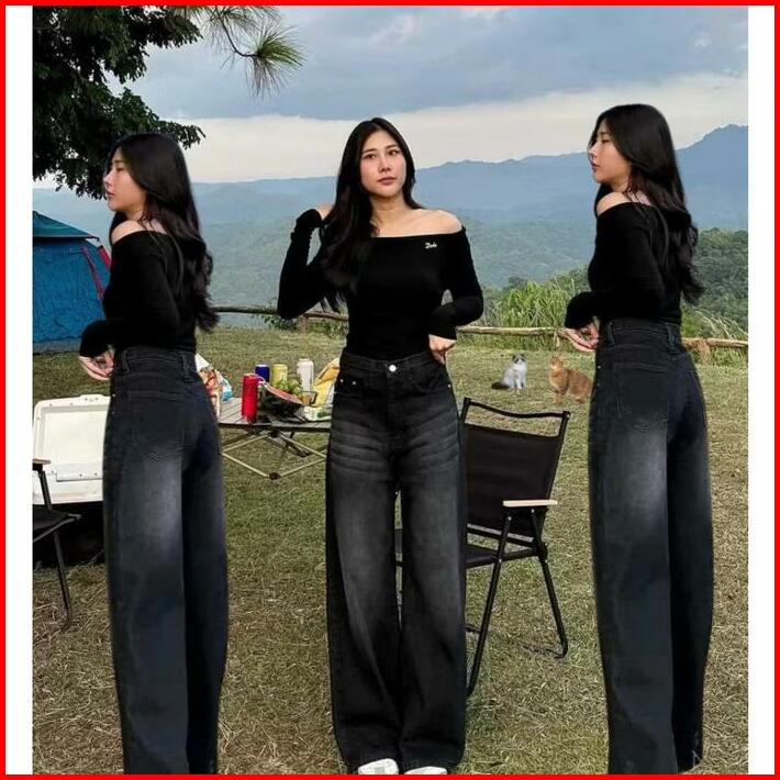 Highwaist Jeans Celana Kulot Jeans Wanita Korean Baggy