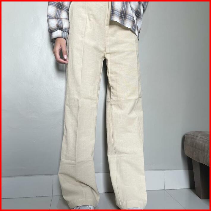 Lili Kulot Highwaist Linen Kulot Celana Wanita Kekinian Panjang Basic Bawahan Kaki Nyaman