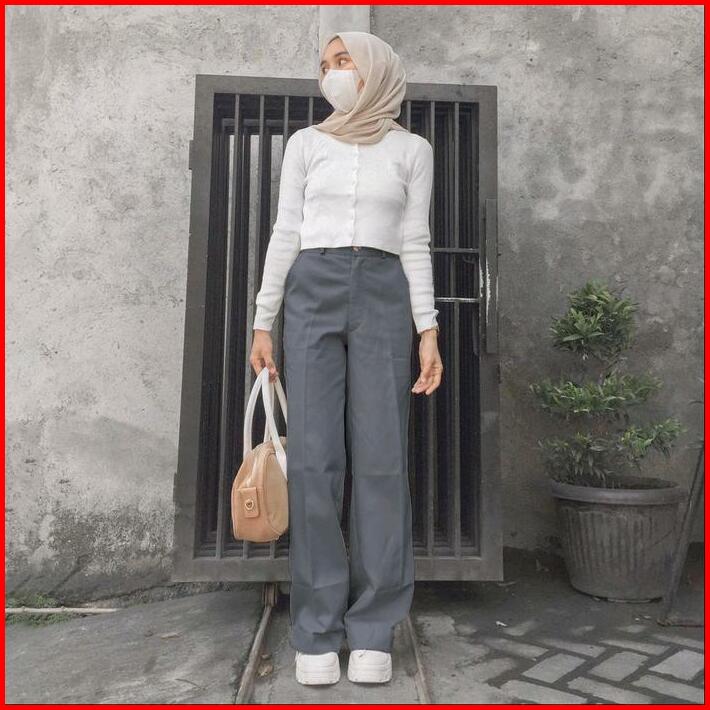 Kulot Basic American Drill Celana Highwaist Wanita Panjang
