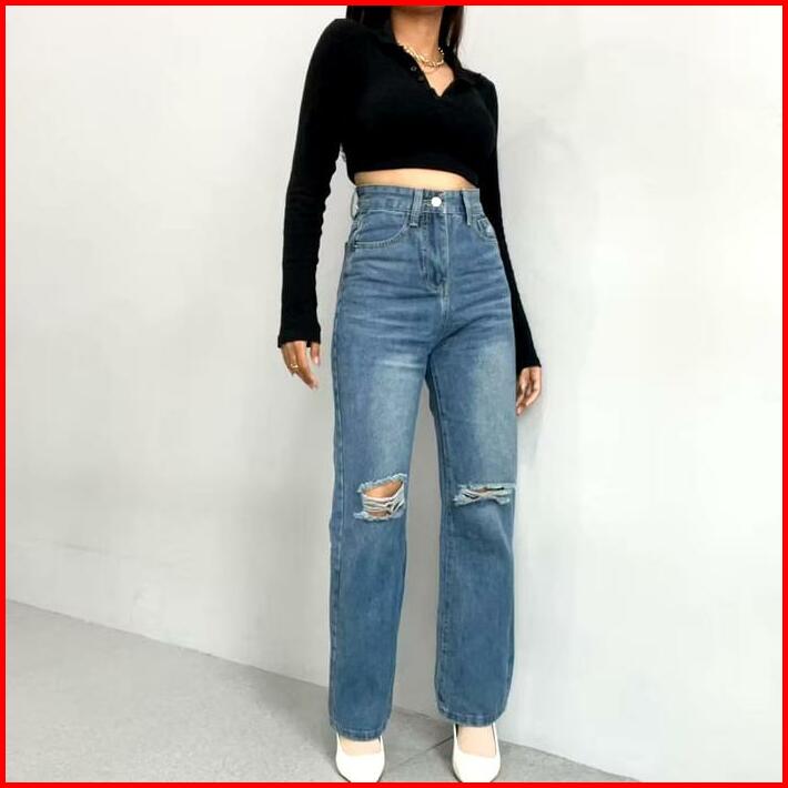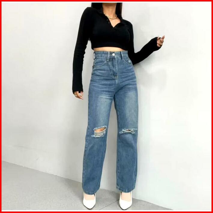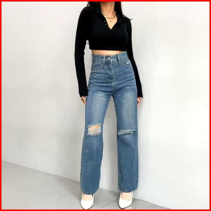 Celana Panjang Highwaist Wanita Jeans Premium Quality Jeans Wanita Polos Ripped Jeans Highwaist Jeans Cewek Nyaman Non S