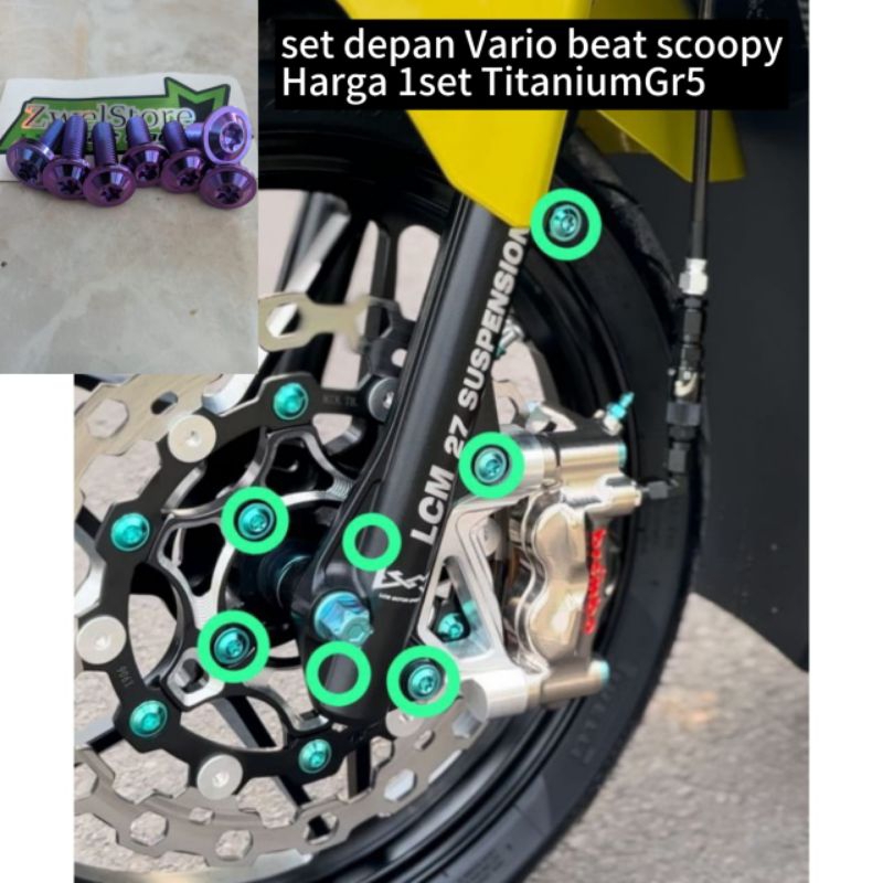 Set Baud Titanium disk kaliper Selang Rem Honda Vario 125/150 beat scoopy