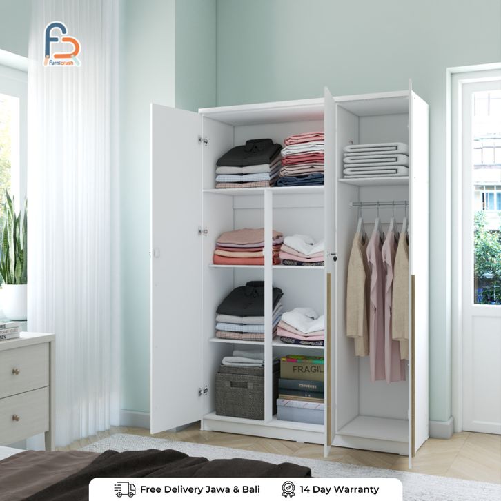 Lemari Pakaian 3 Pintu / Lemari Baju Full Rak / Almari Baju / CAMILLE WDF 301