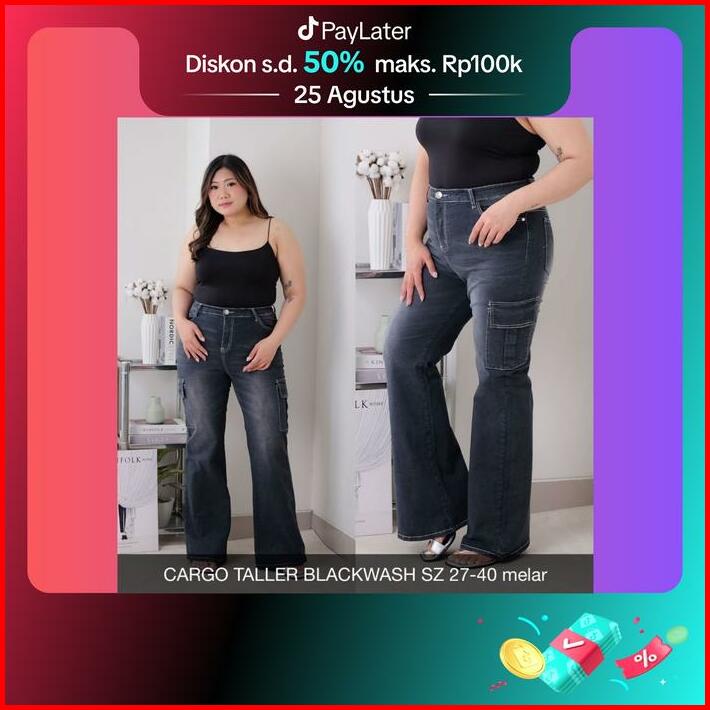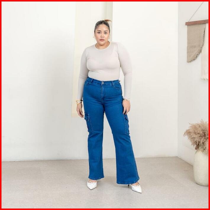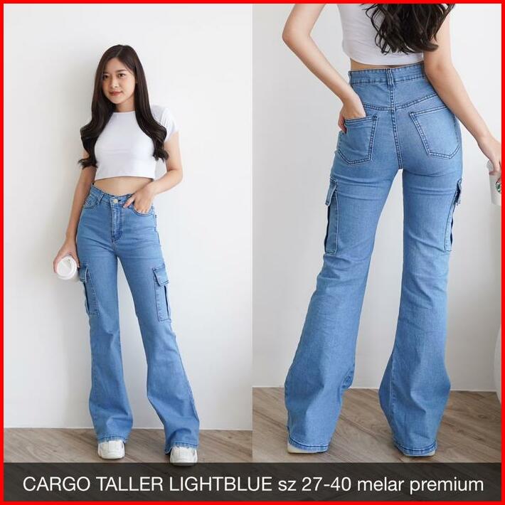 Sys Clothier Cargo Taller Jeans Celana Jeans Wanita Ukuran Normal Dan Jumbo Ii Cutbray -highwaist -stertch