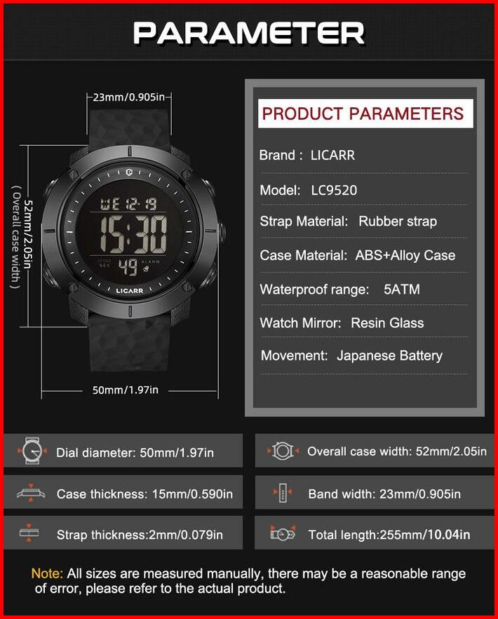 Licarr Jam Tangan Pria Olahraga Original Digital Fashion Kasual Tahan Air Dengan Stopwatch 9520