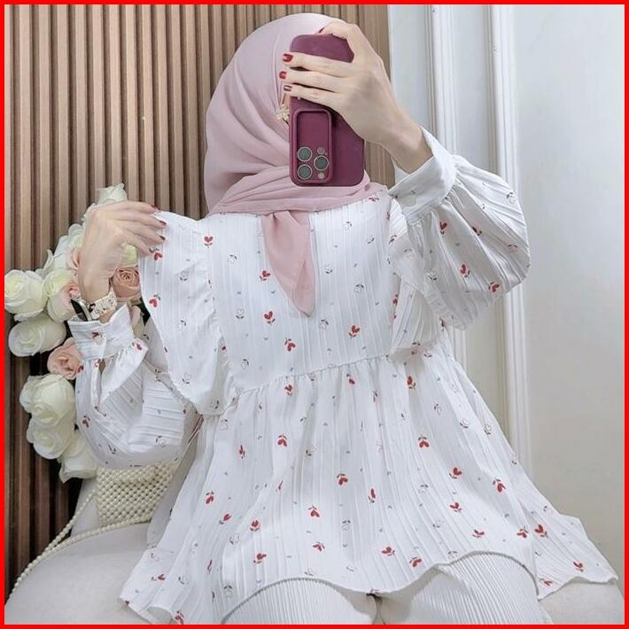 Rania Blouse Ruffle Motif Blouse Ruffle Wanita Blouse Korean Look Wanita Atasan Free Tali