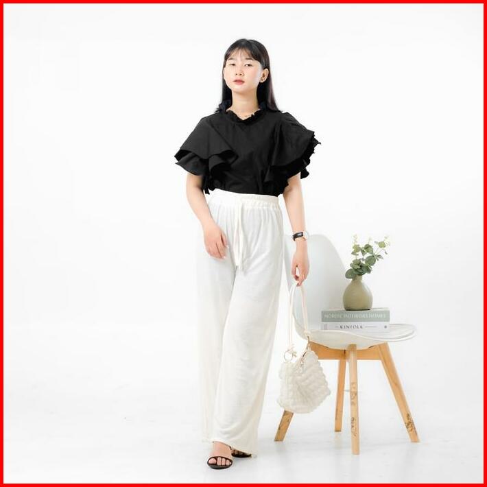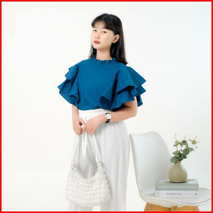 Lea Blouse Ruffle Atasan Wanita Baju Hitam Maroon Top Polos Wanita Korean Style Panjang