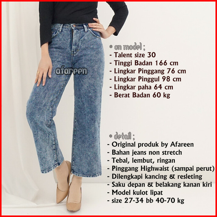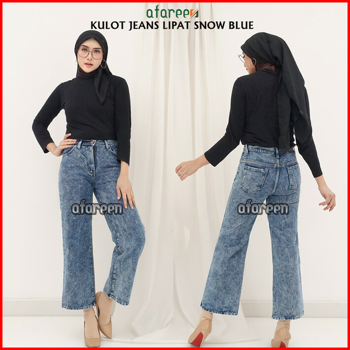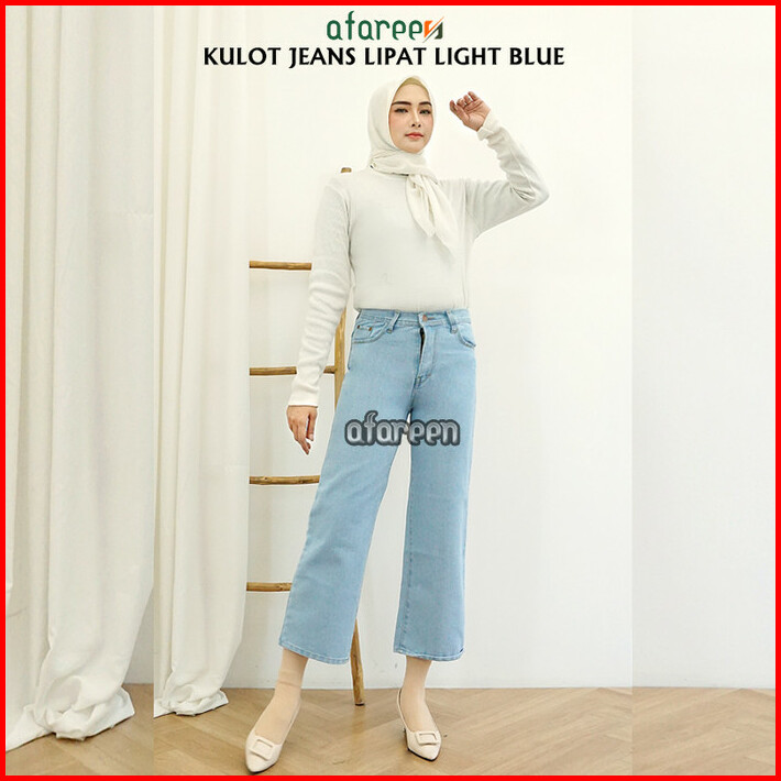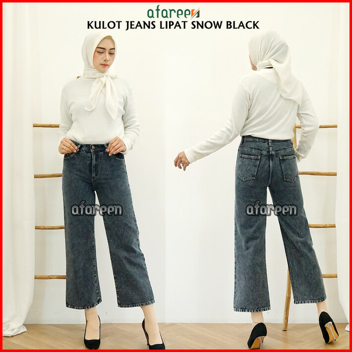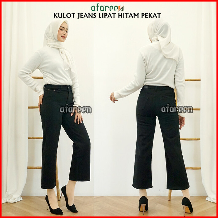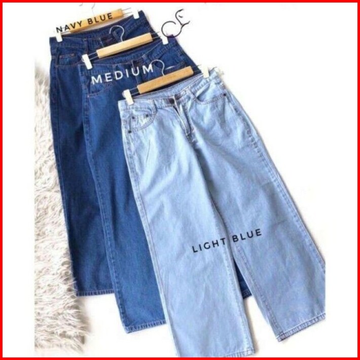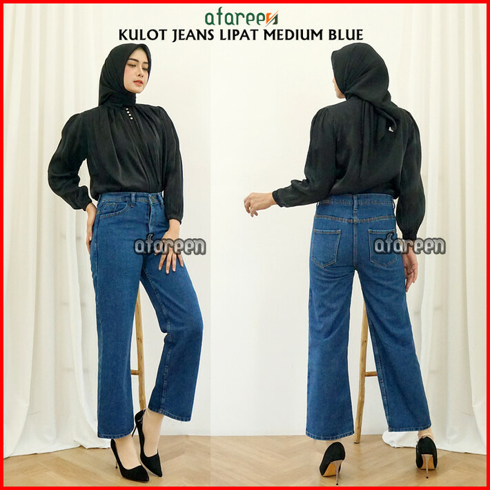 Kulot Jeans Lipat Basic Celana Jeans Boyfriend Highwaist Wanita