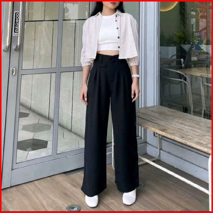 Oro Pants- Bawahan Celana Panjang Wanita Oro Pants Knit Panjang Highwaist Hitam