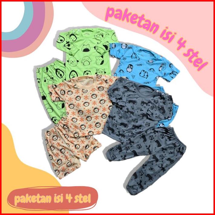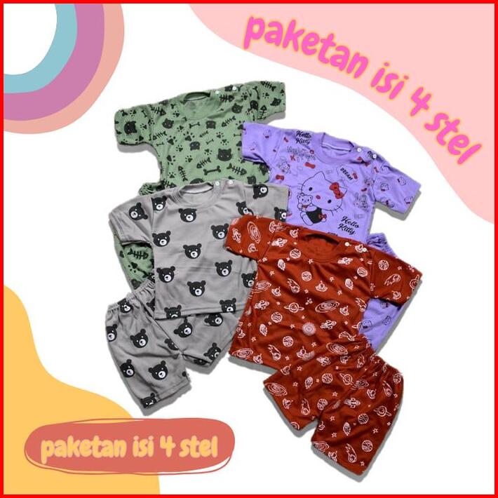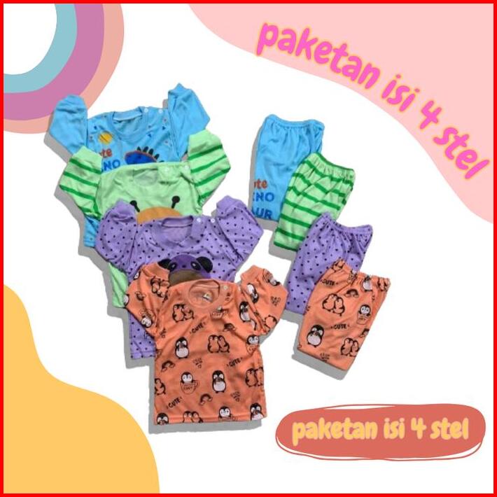 Isi 4 Pcs Setelan Baju Bayi Anak 3-18 Bulan Laki Laki Perempuan Warna Dan Motif Random Katun