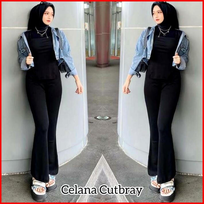 Afsa Store-celana Cutbray Panjang Wanita Knit Flare Pants