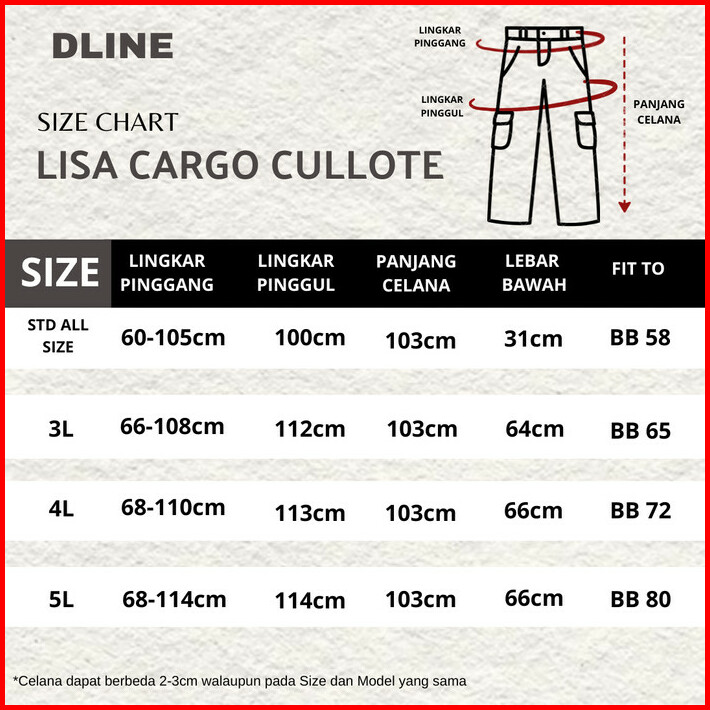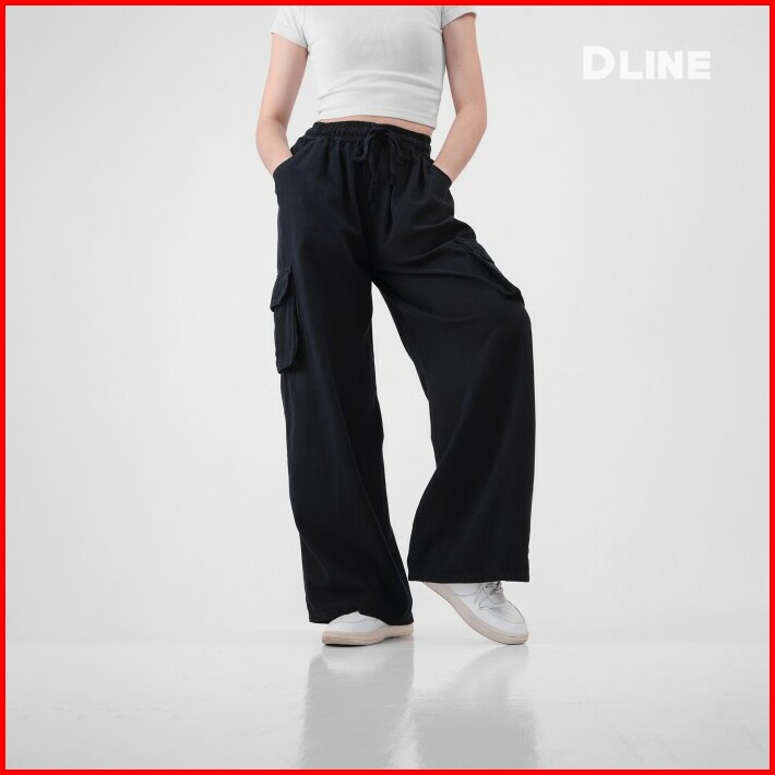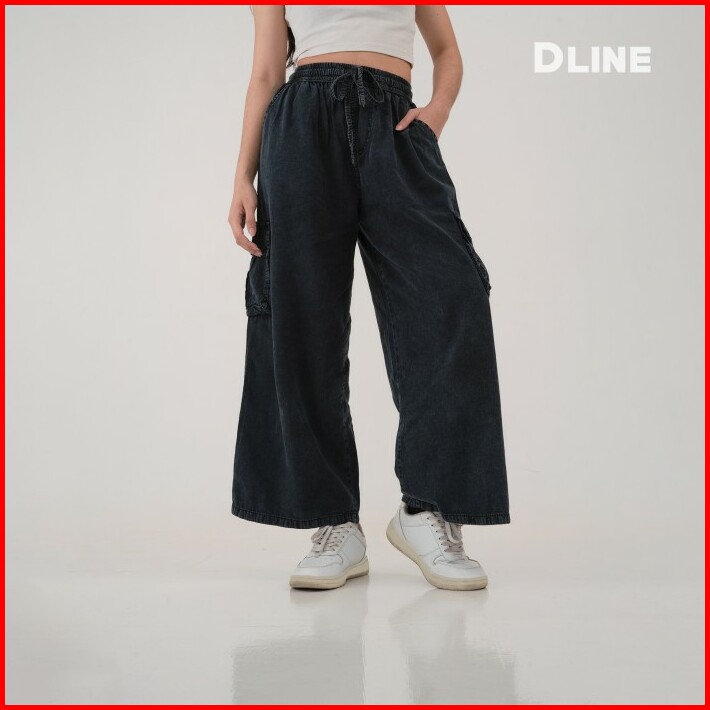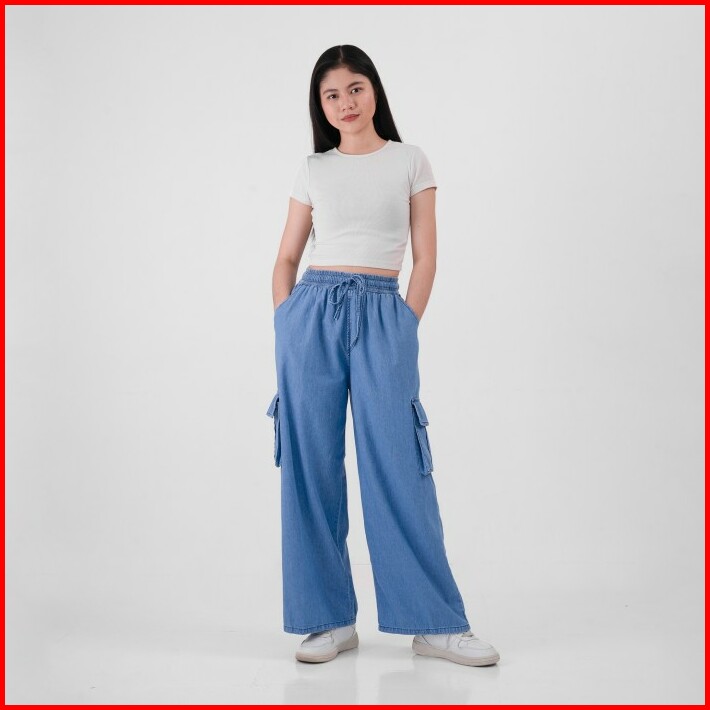 Celana Kulot Cargo Highwaist Panjang Jeans Wanita Fit 100 Kg Super Jumbo Pinggang Karet Lisa Cargo